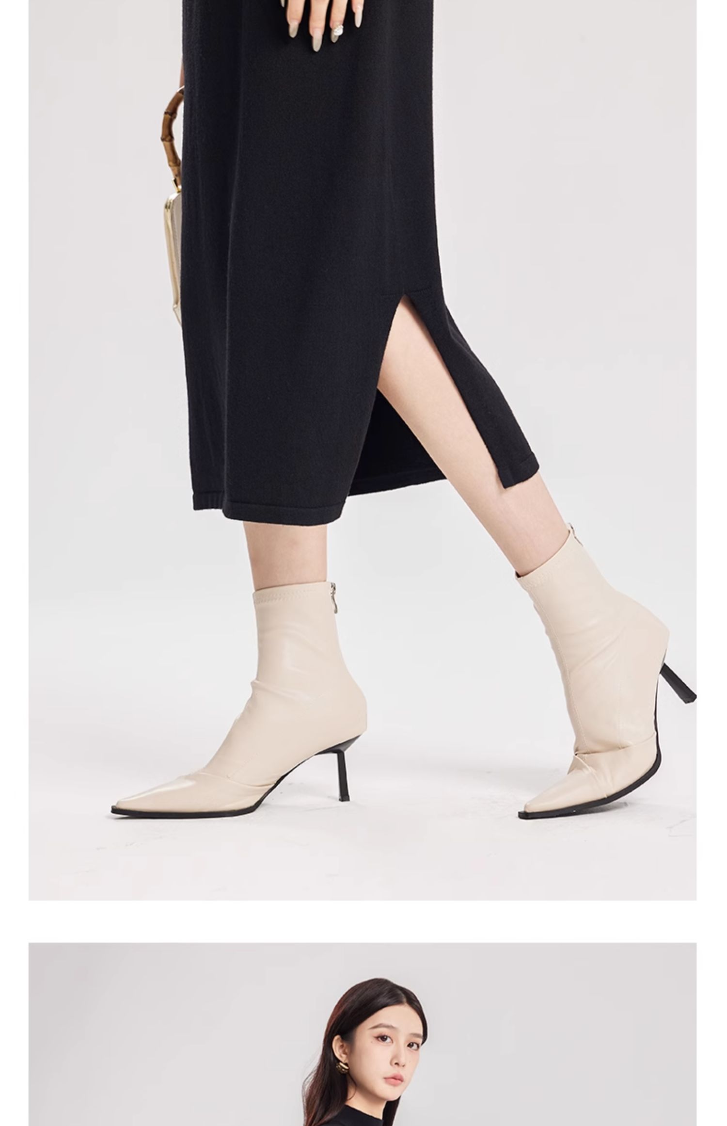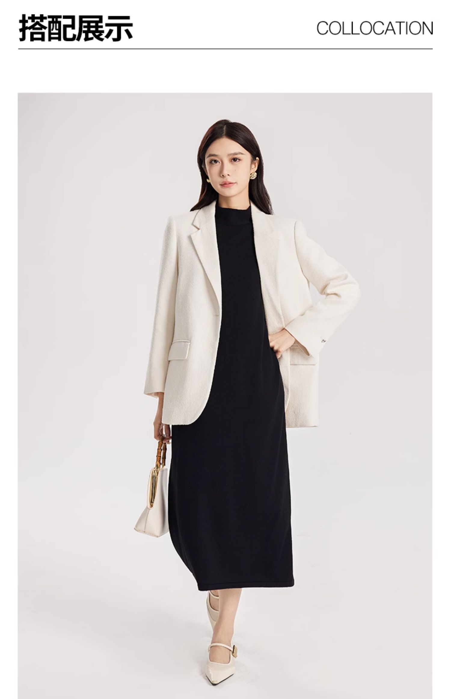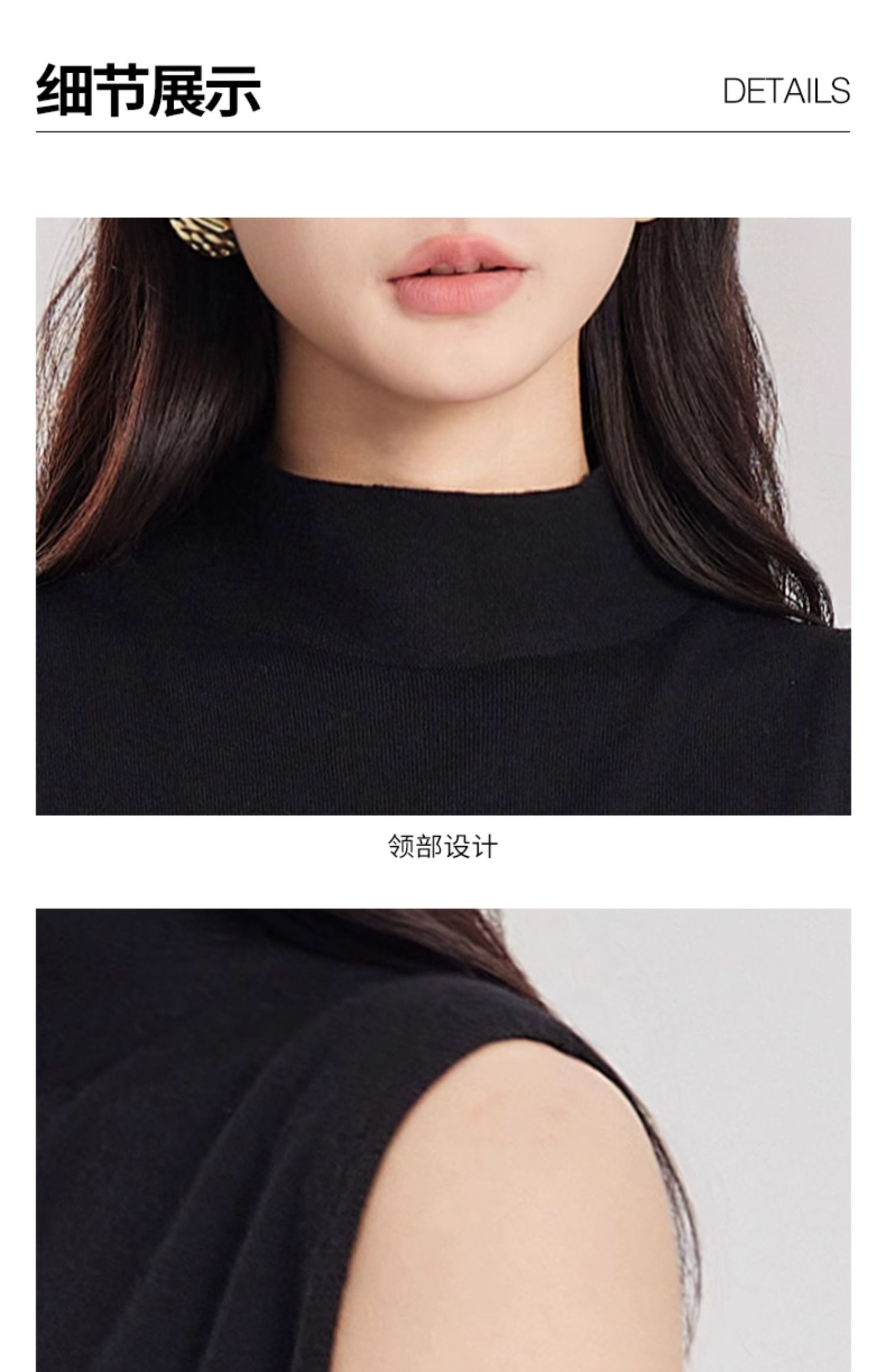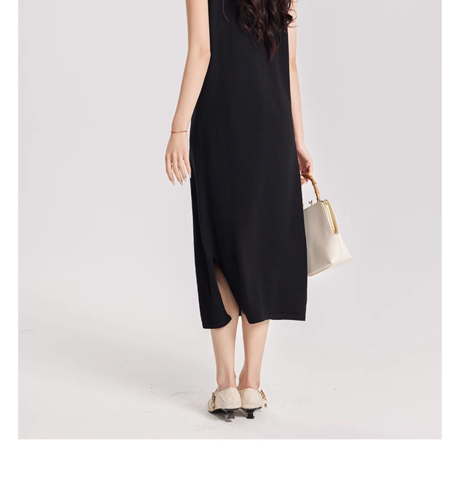 oldcolour春季新款黑色简约高级宽松半高领针织连衣裙女Q110513A1