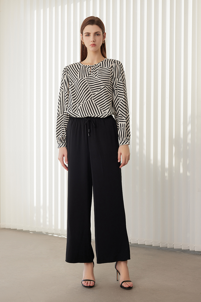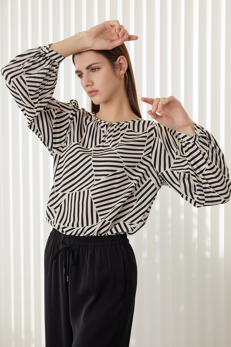 【真丝条纹拼接上衣】24年春夏新品女士100%桑蚕丝薄款上衣