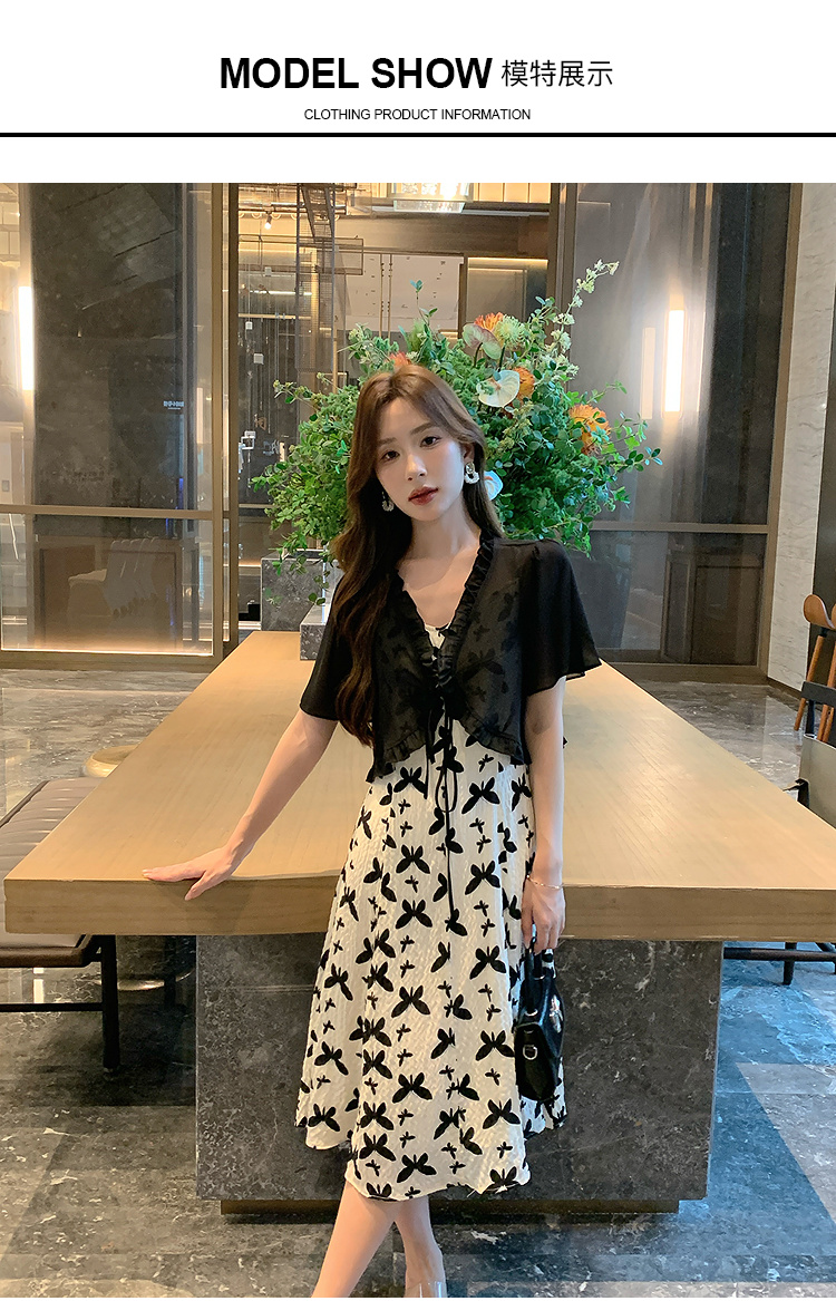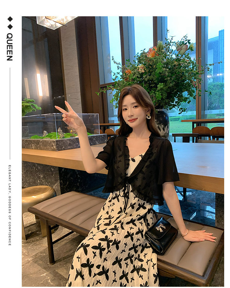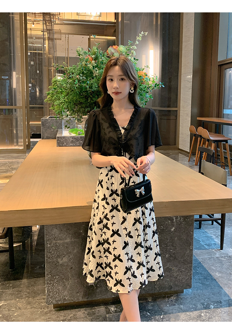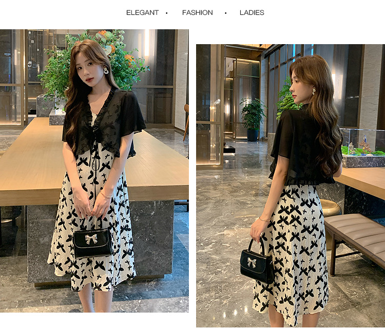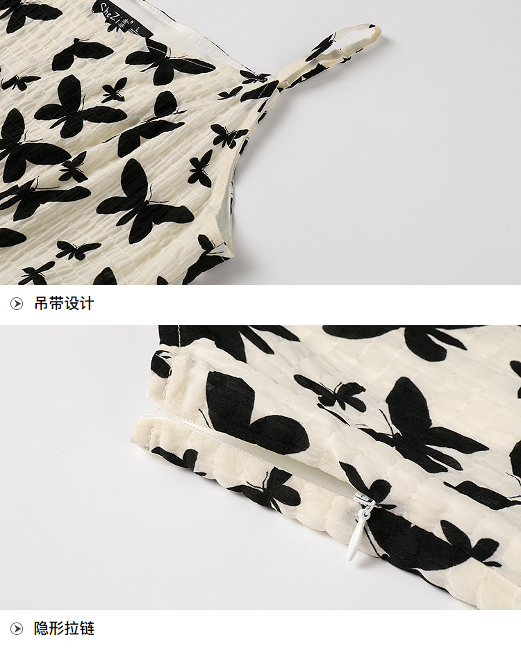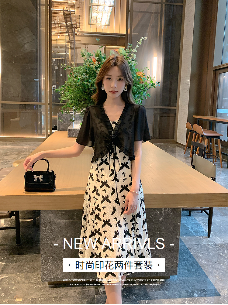 奢姿大码女装2025夏季减龄蝴蝶印花吊带裙两件套胖妹妹时尚套装9952990542