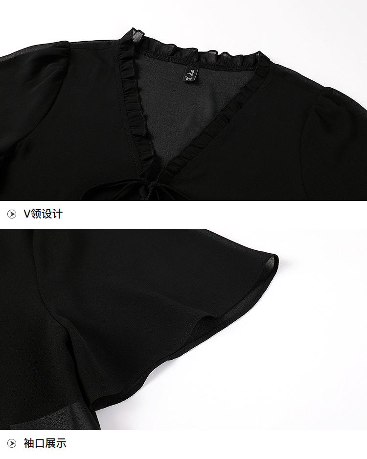 奢姿大码女装2026夏季木耳边拼接翻领连衣裙胖妹妹时尚千金风裙子9962872182