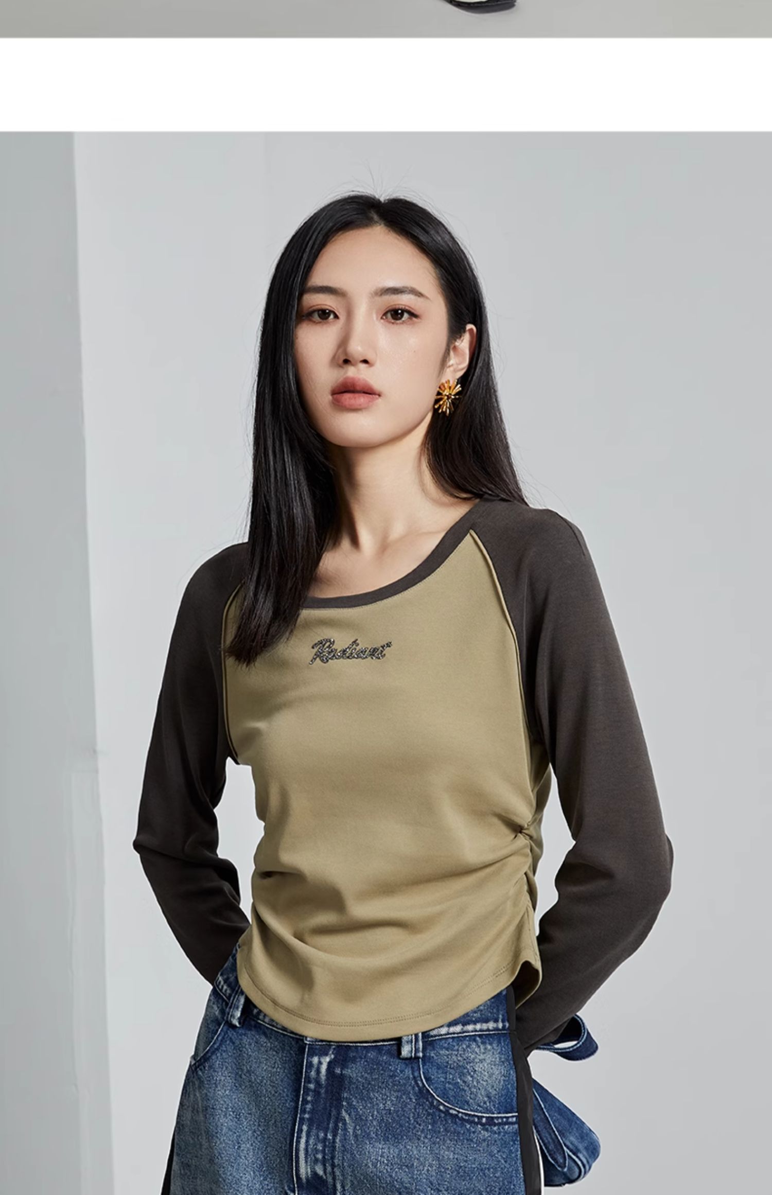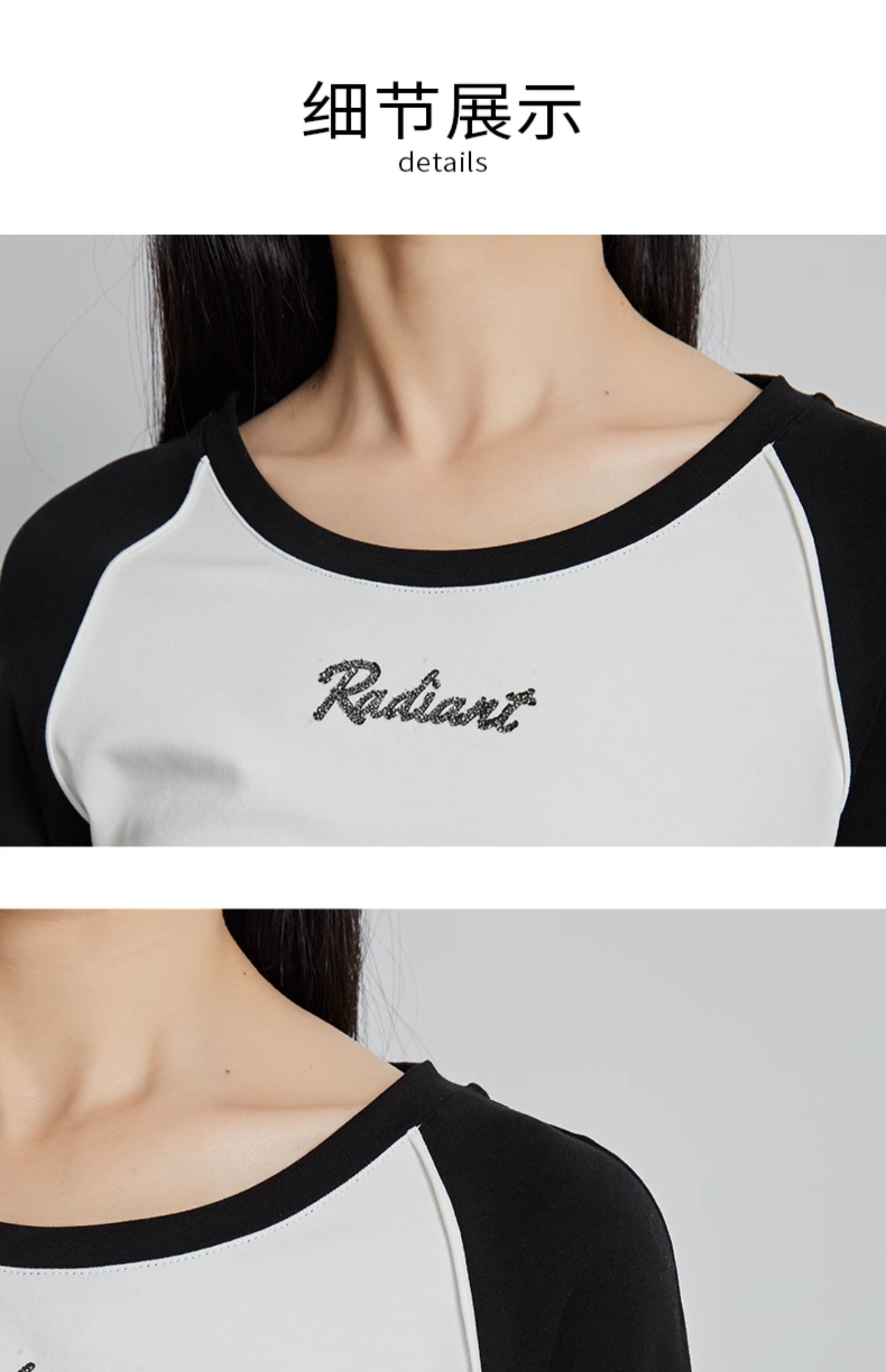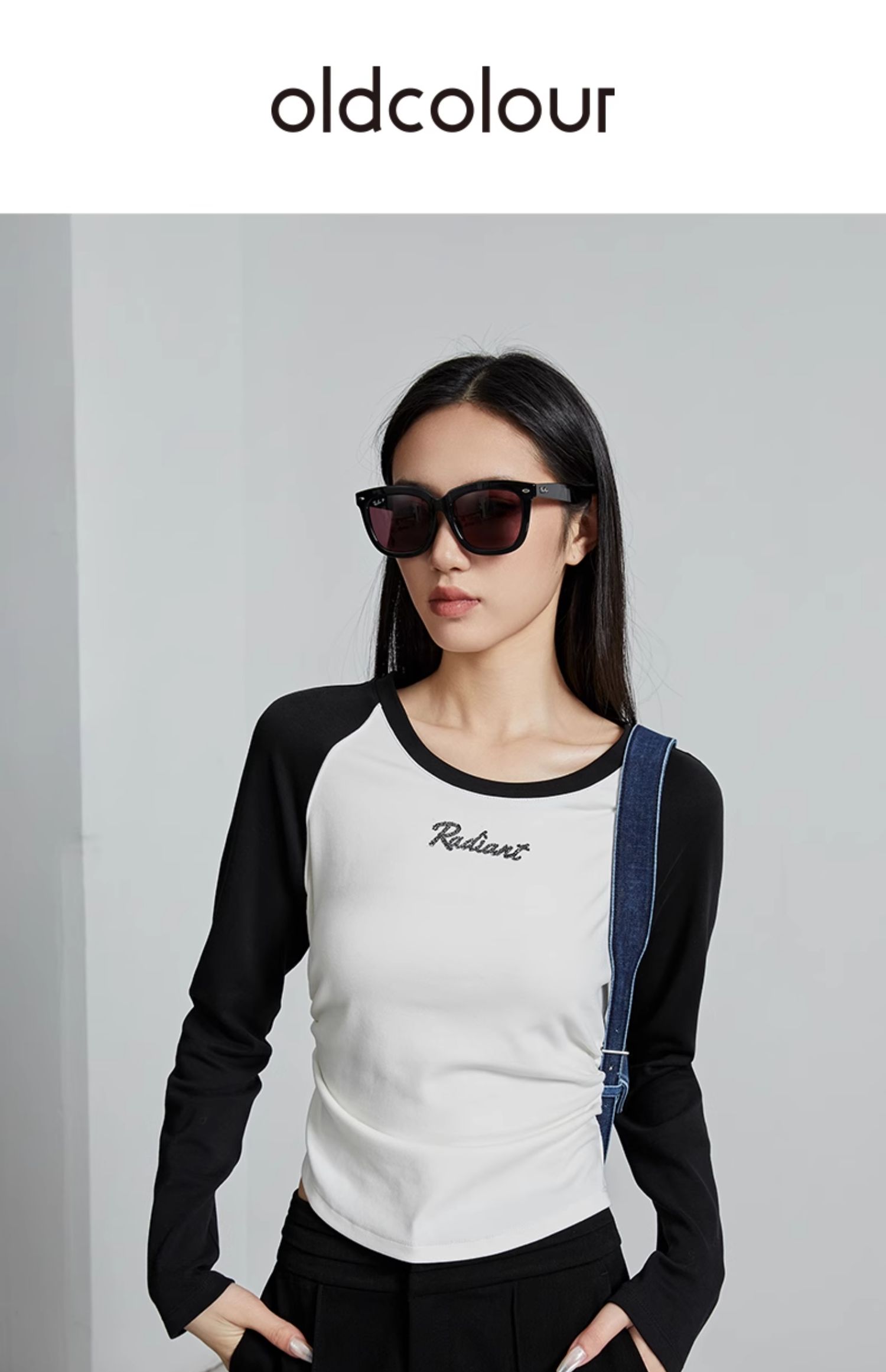 oldcolour秋季新款美式插肩T恤女复古圆领长袖上衣P330202A1