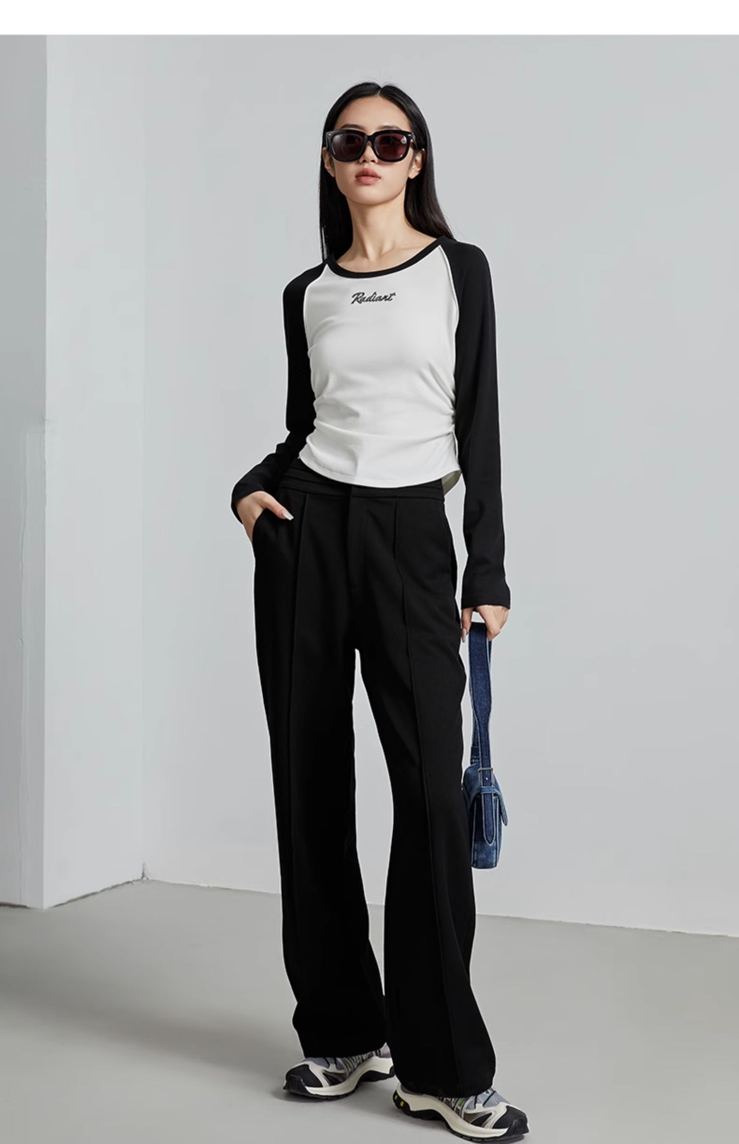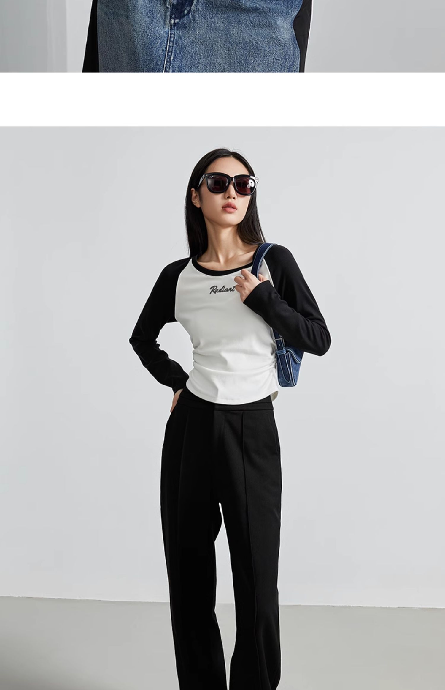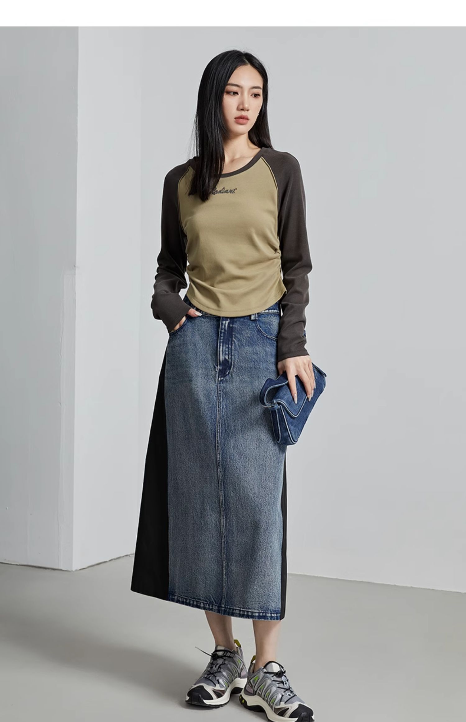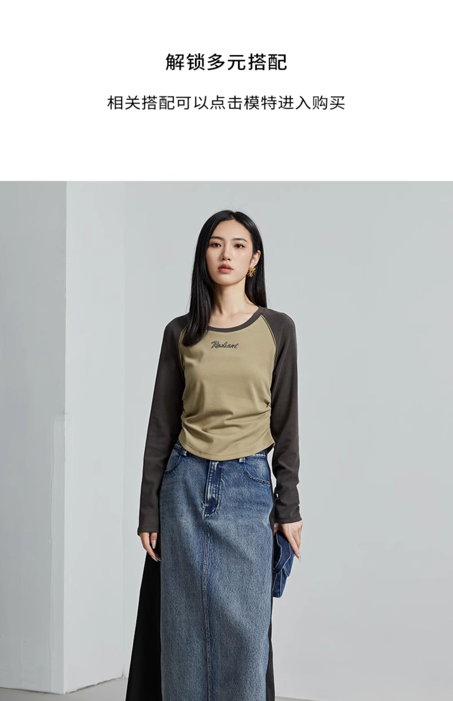 oldcolour秋季新款美式插肩T恤女复古圆领长袖上衣P330202A1