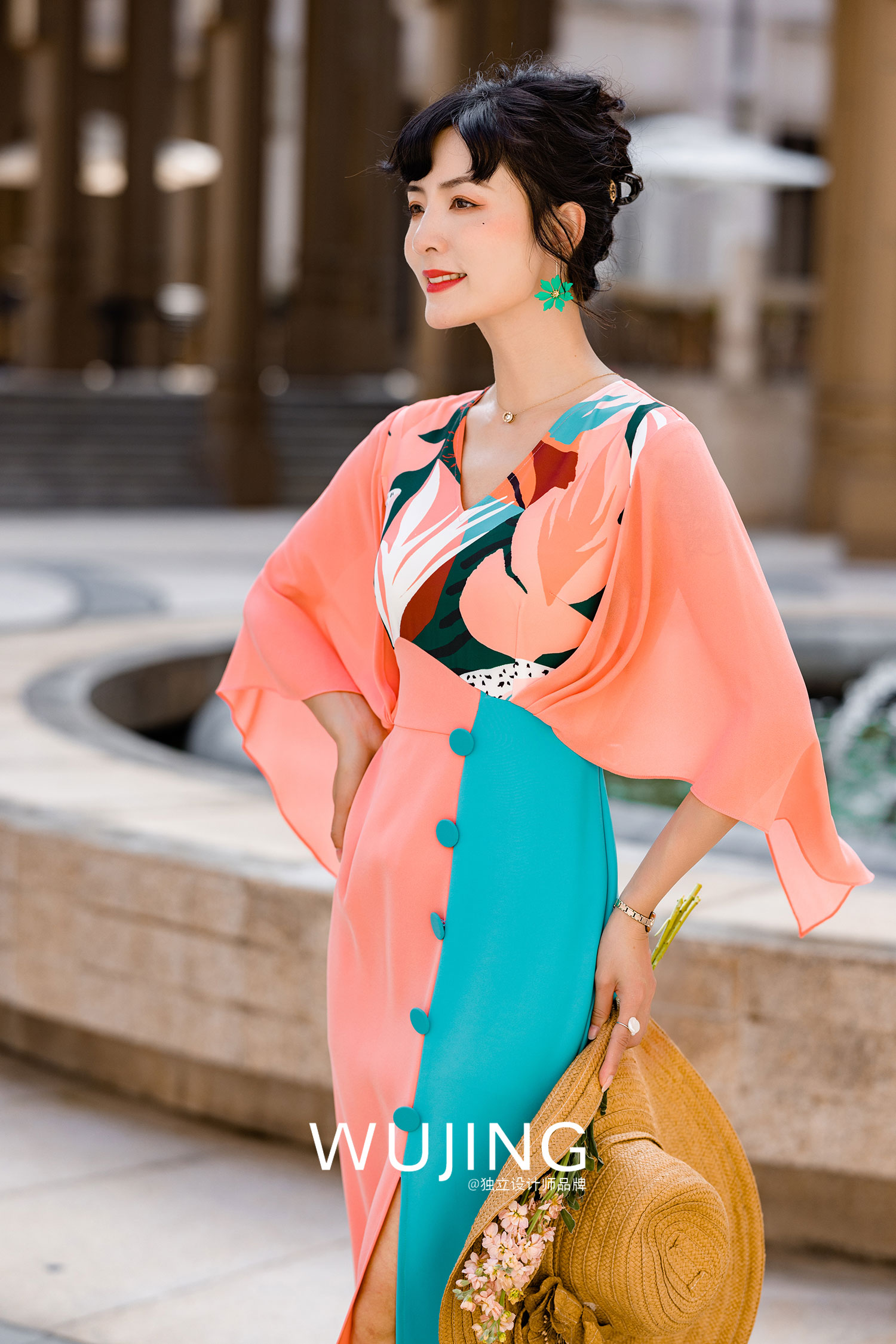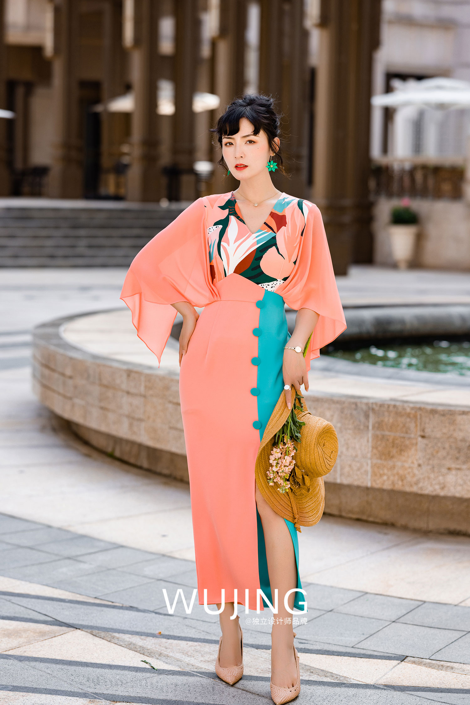 3022001 如珊寻梦 珊瑚粉色连衣裙 雾境