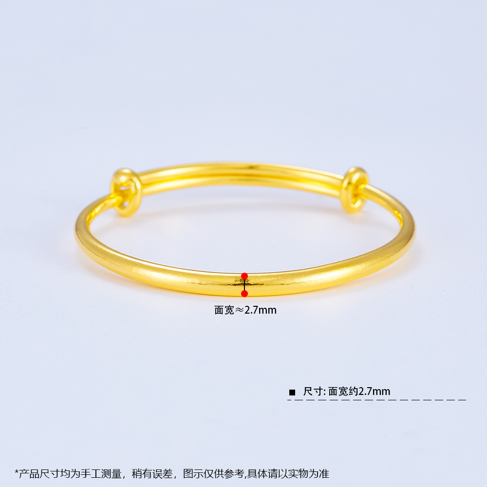 【限时克减128元】足金999.9 #儿童/宝宝 黄金空心(面宽约2.6-3mm)光面光圈单只推拉童镯(TZ00011-03)(预售产品下单后不退款不退货不换货不补差价)