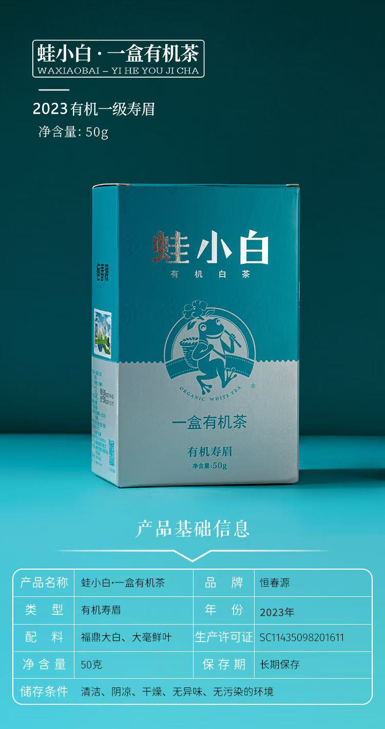 白茶丨恒春源 2023年有机一级寿眉 蛙小白 一盒有机茶 50g/盒