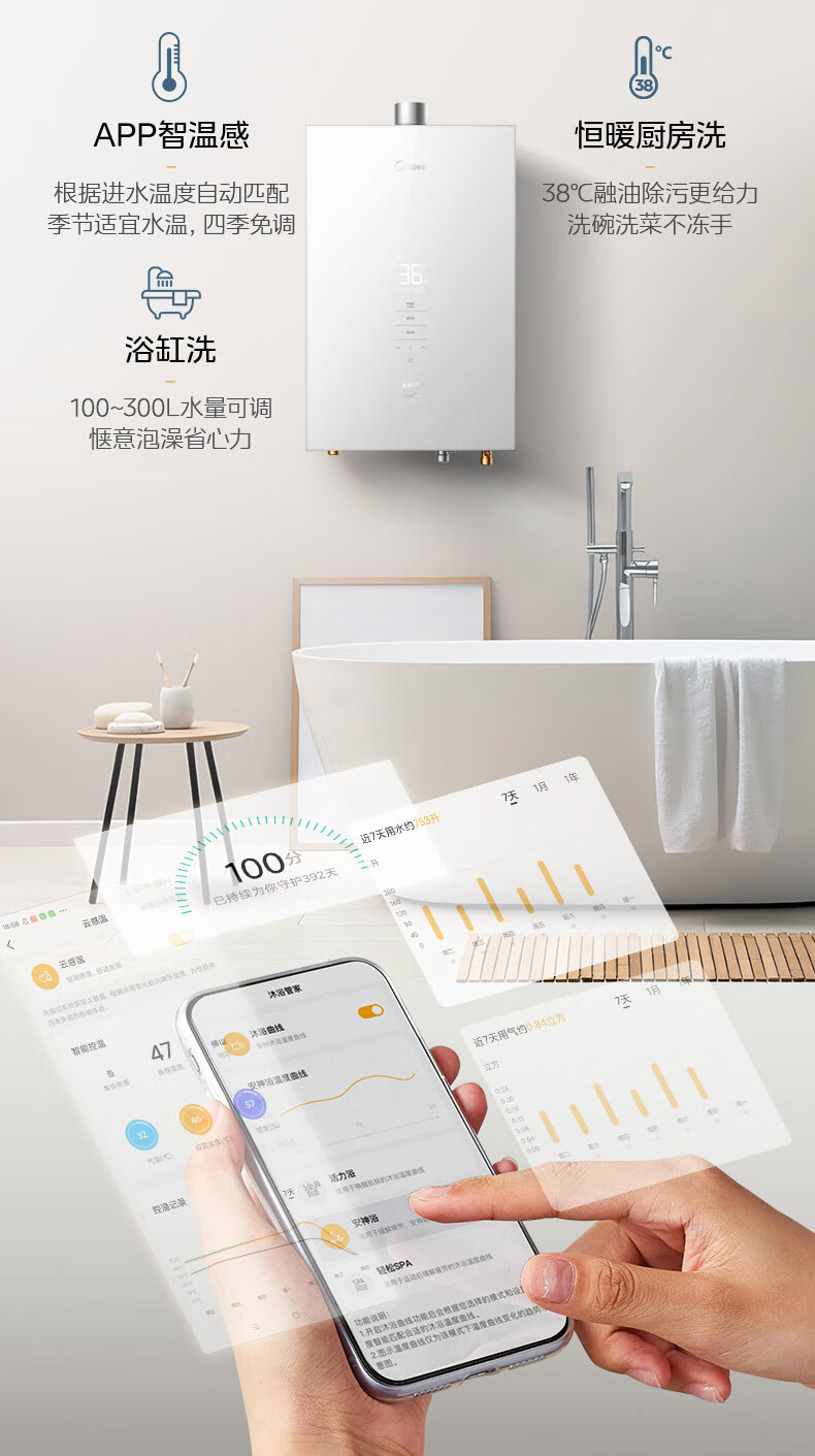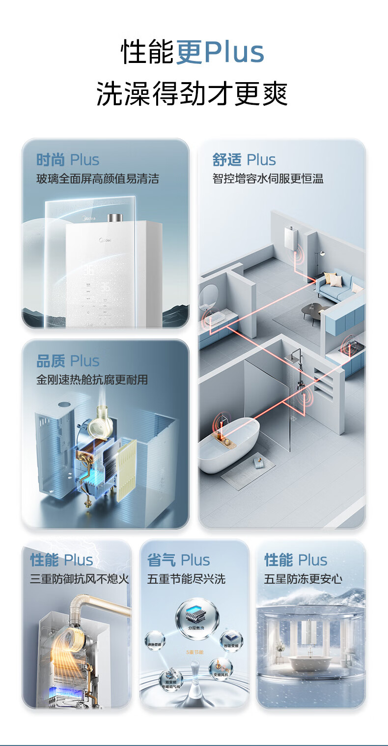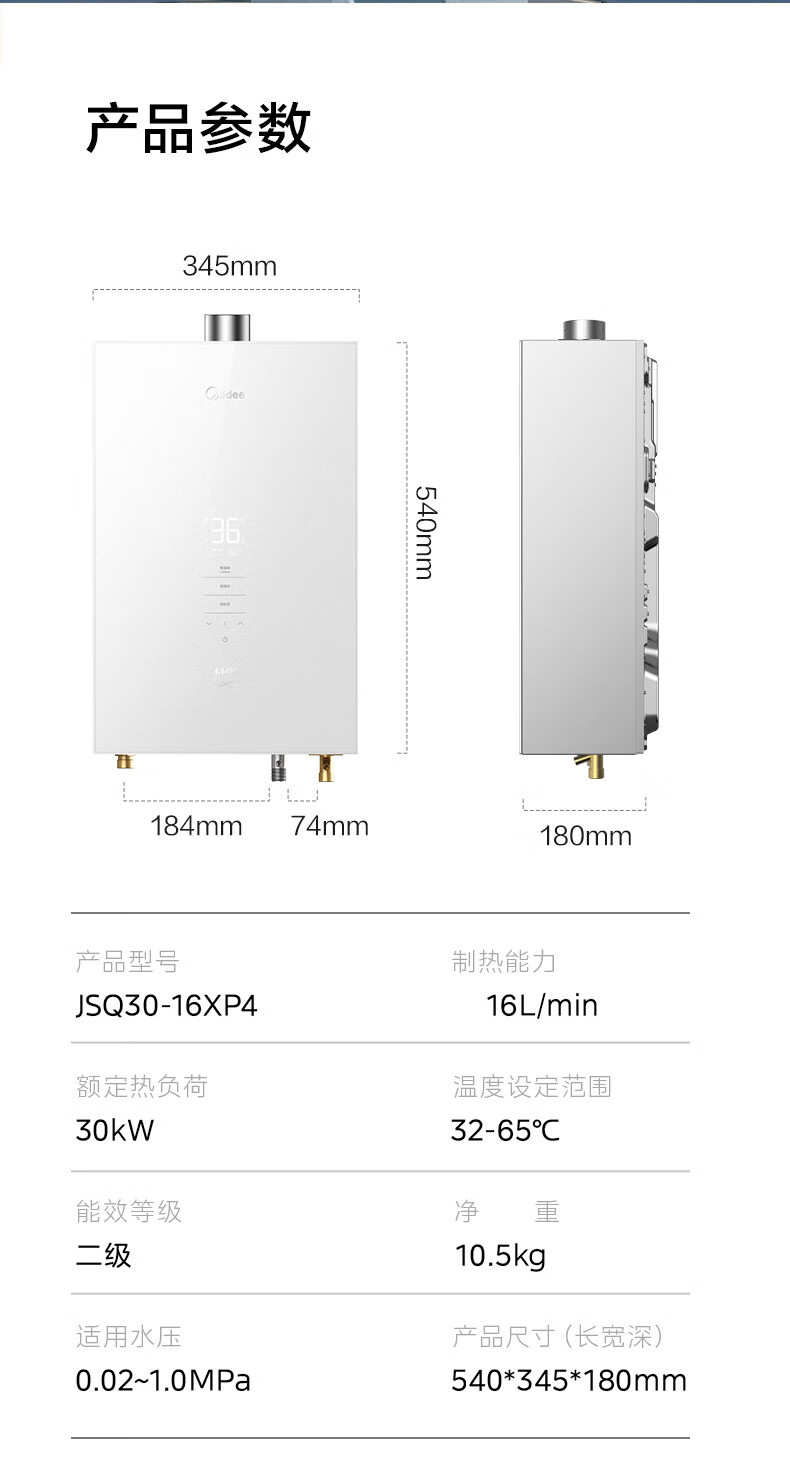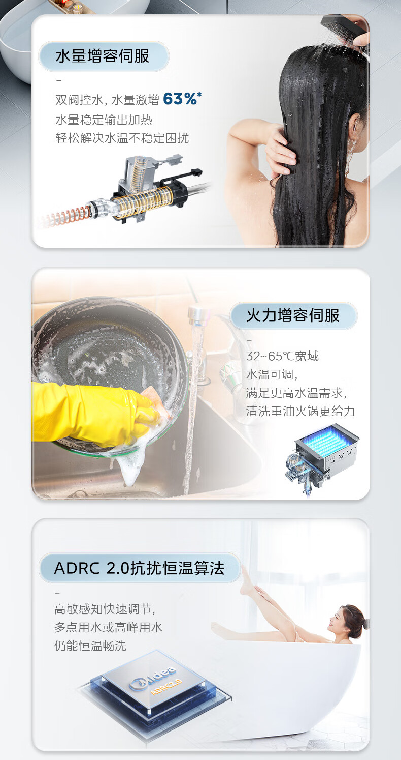 美的(Midea)16升燃气热水器_水伺服恒温_ADRC2.0恒温算法_金刚速热舱JSQ30-16XP4*