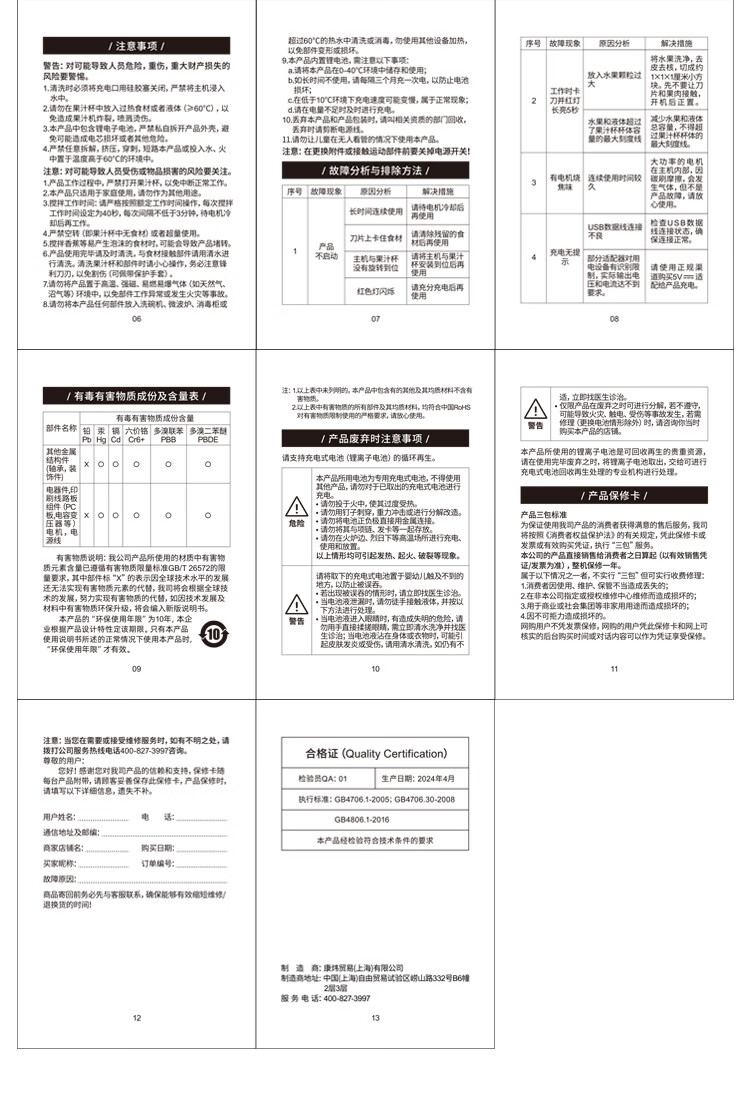 康宁榨汁机小型便携式水果电动榨汁杯果汁机迷你多功能炸果汁 活力随行果汁杯