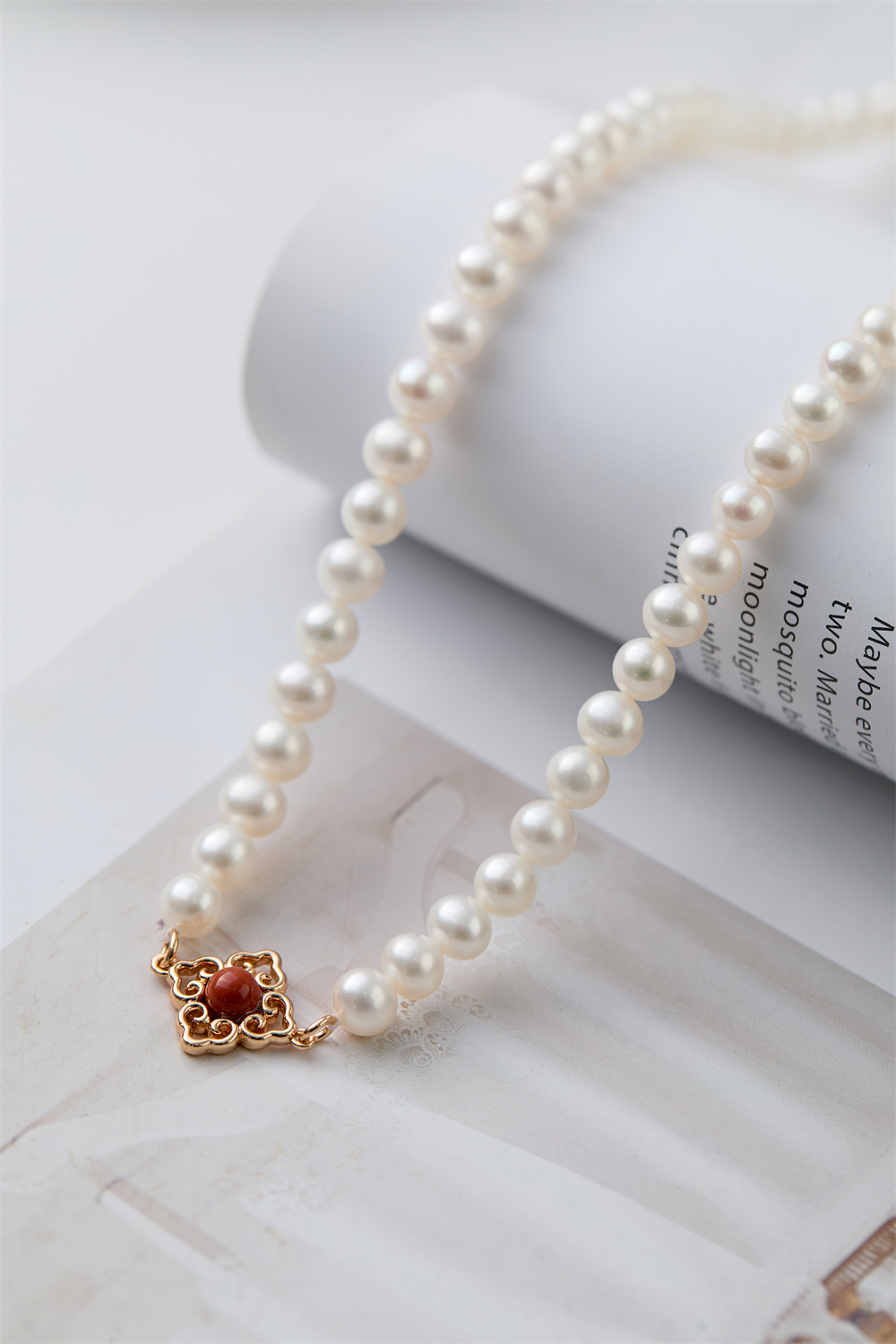 日落沙滩 复古麻边珍珠项链