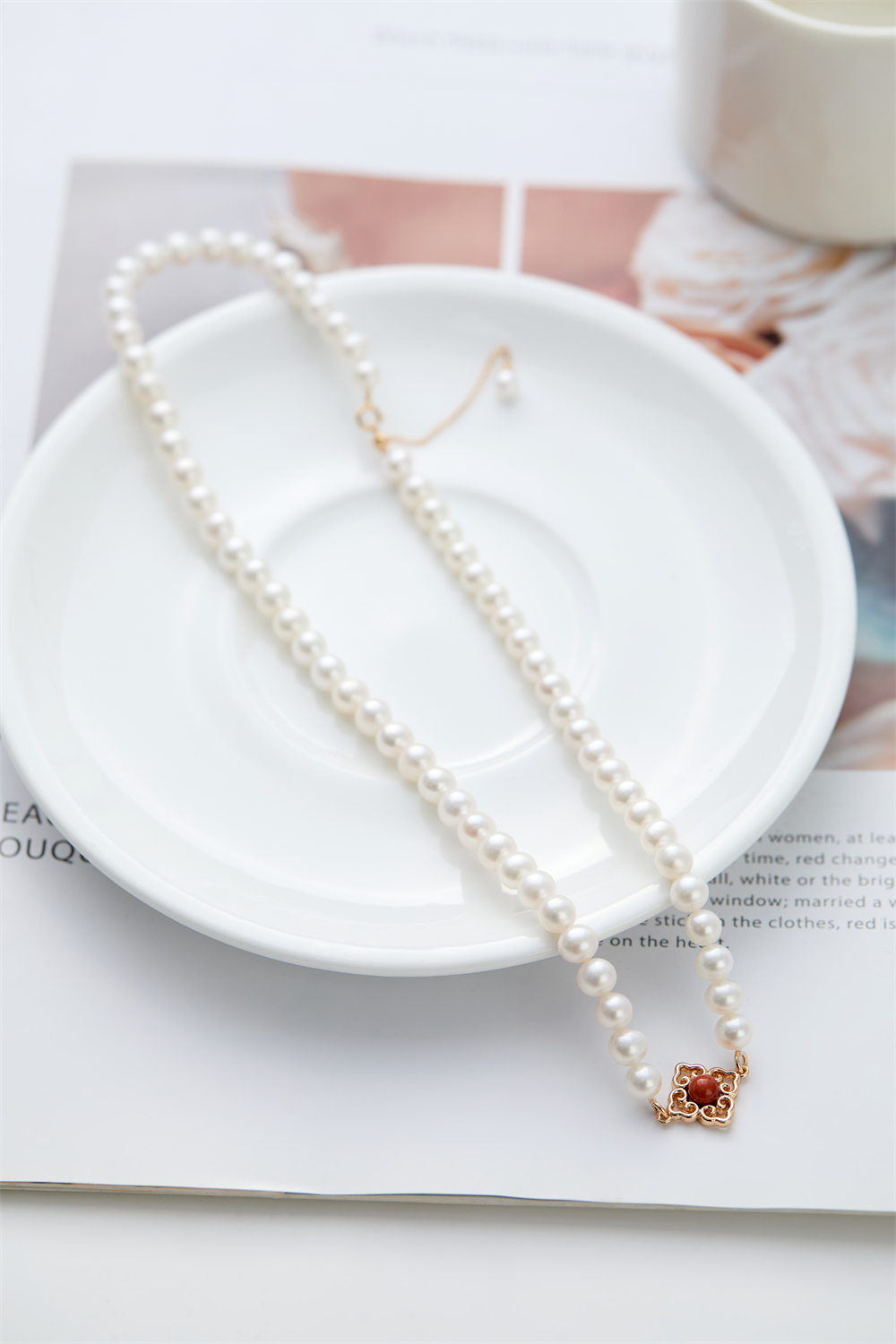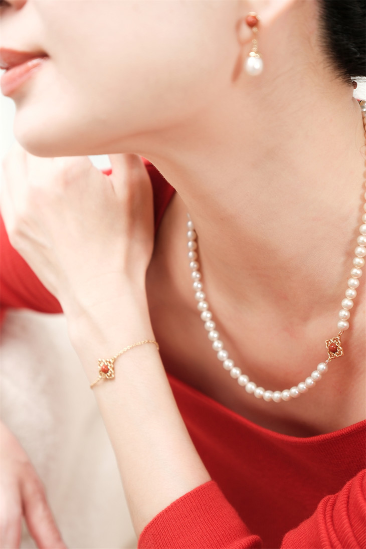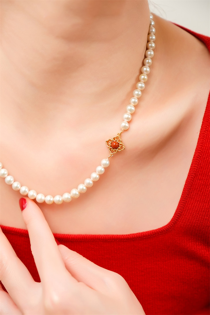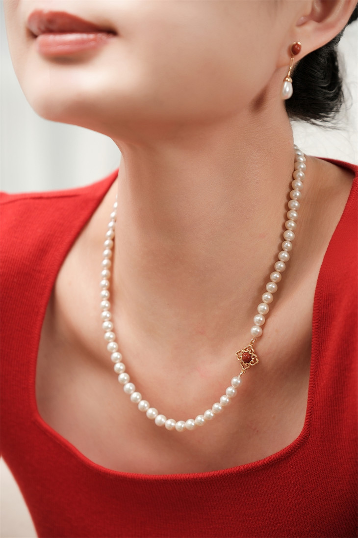 万事如意 四叶草(南红)珍珠项链