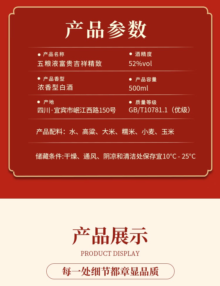 五粮液 富贵吉祥精致版 国民喜酒 500毫升 52度 浓香型白酒