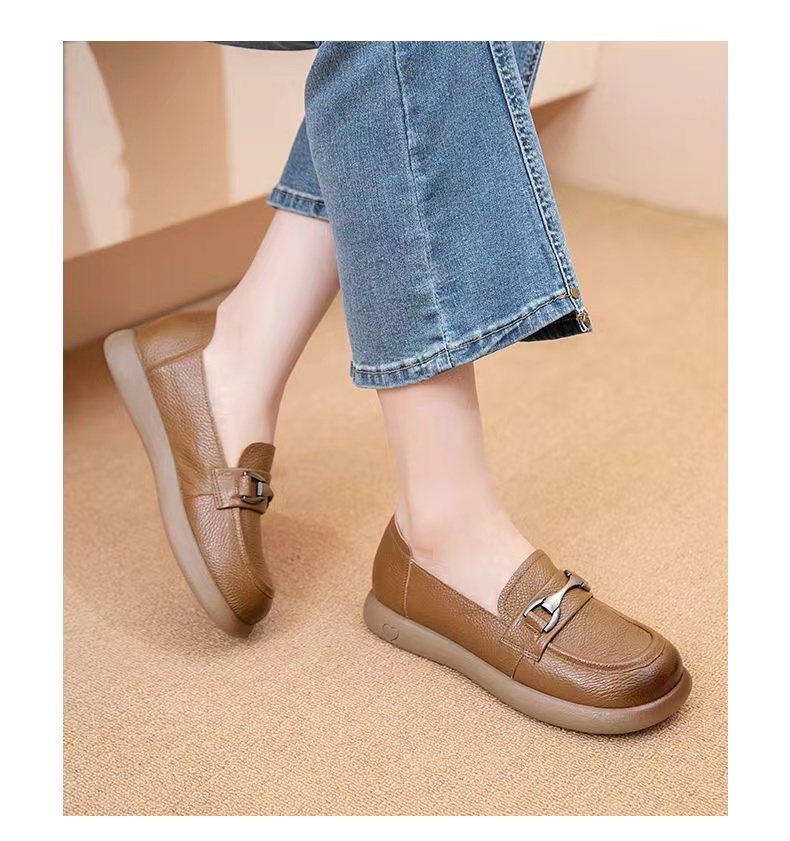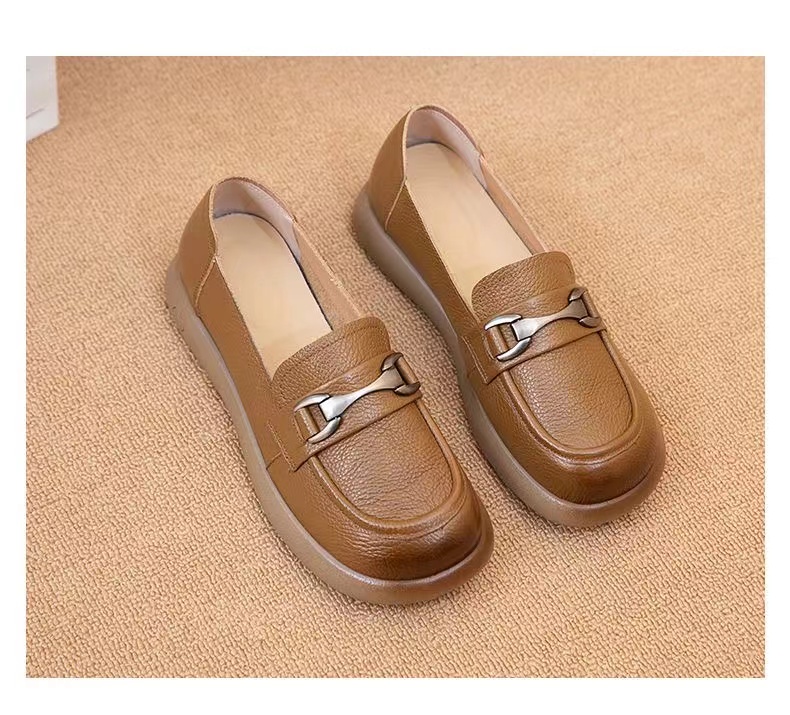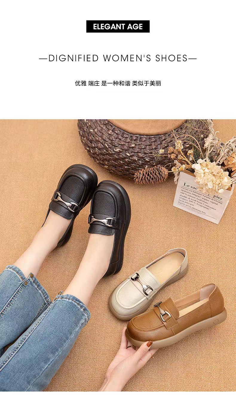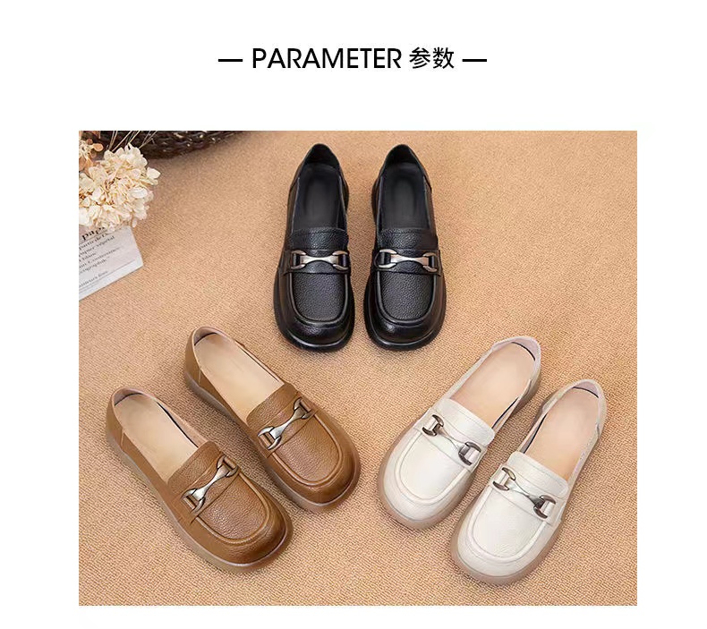 【实付满399送保温杯】【复古防滑乐福鞋】新款休闲小皮鞋一脚蹬牛皮单鞋