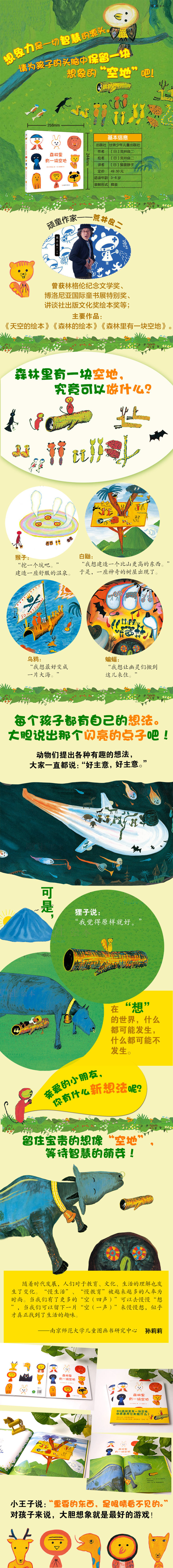 森林里的一块空地,因为空白,充满神秘,有很多未知的可能性……它是孩子对生活原初的憧憬,新奇、充满想象和生机。尊重孩子世界的那块“空地”,等待他们自己去探索吧!