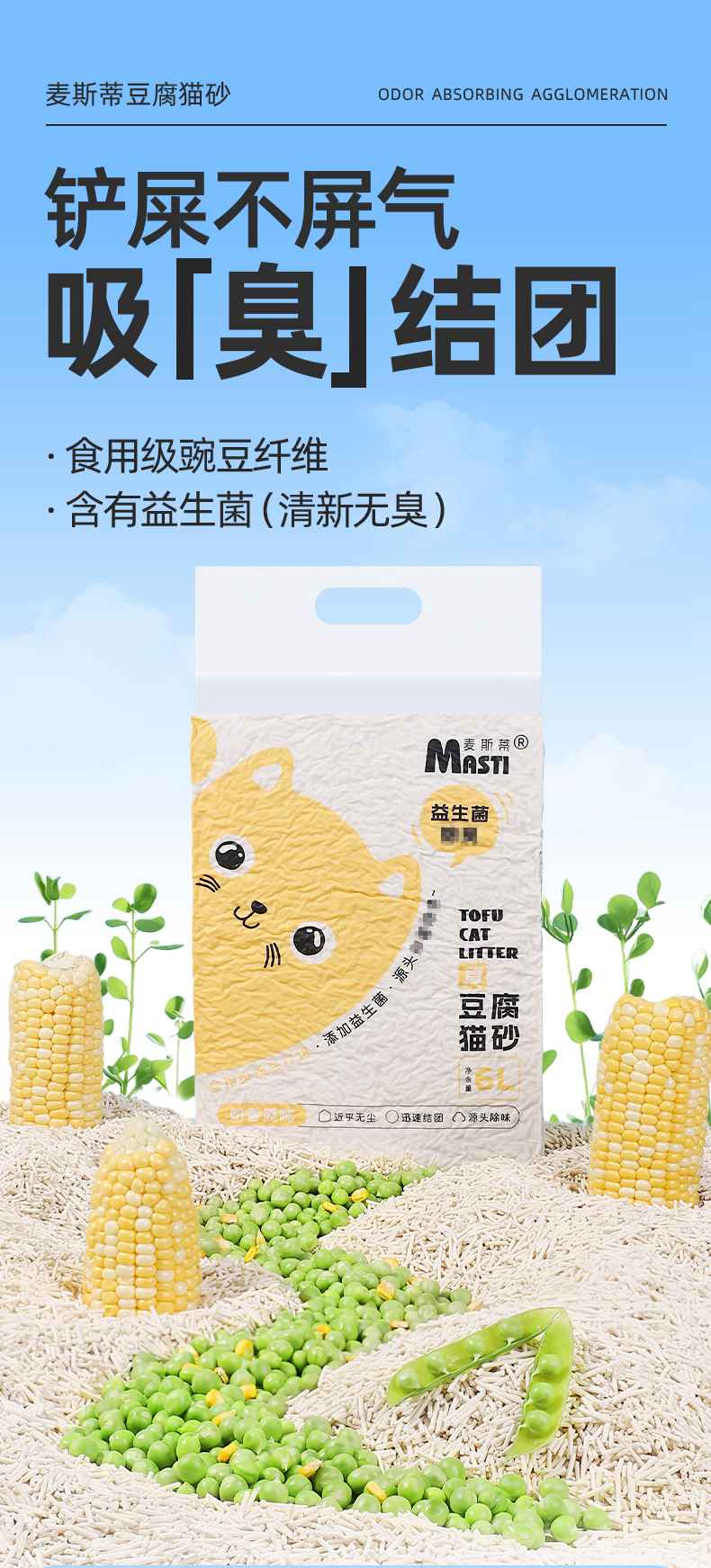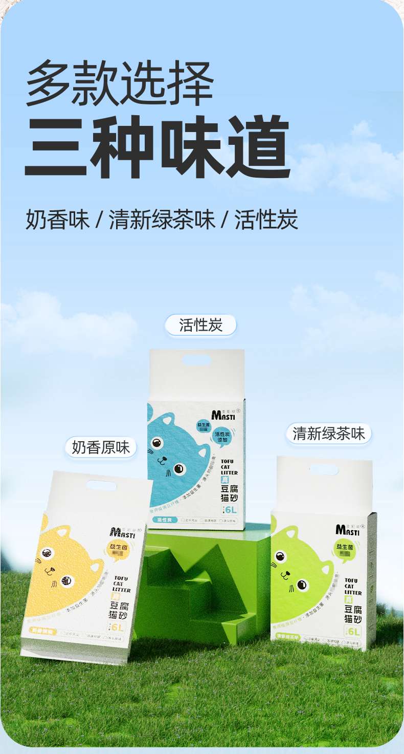 【美团渠道】【猫砂】麦斯蒂益生菌豆腐猫砂6L 绿茶/活性炭/奶香 结团快不沾底