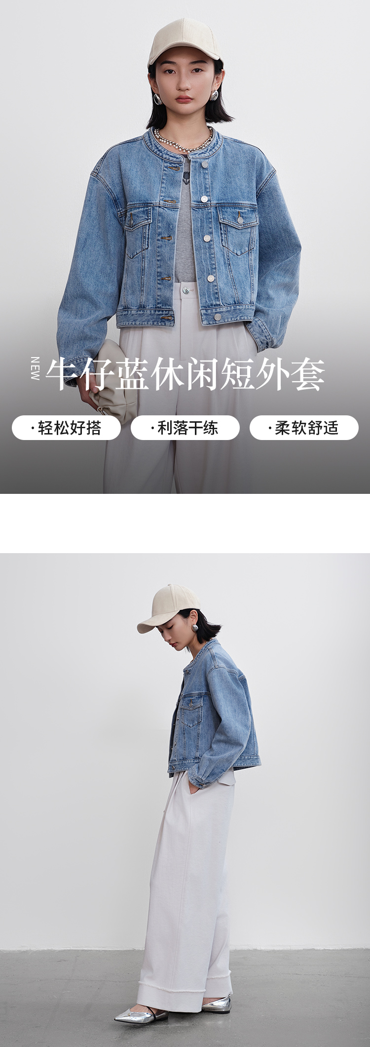 【商场同款】CNJ5283 “去班味牛仔衣” 截短式圆领牛仔外套