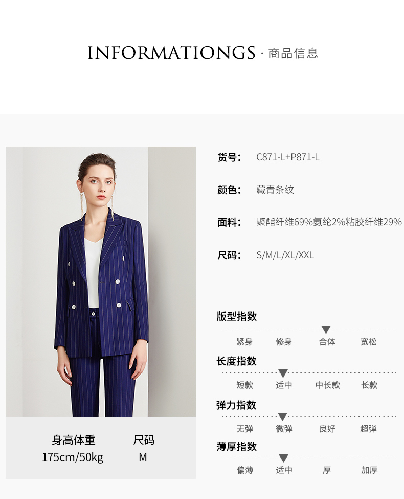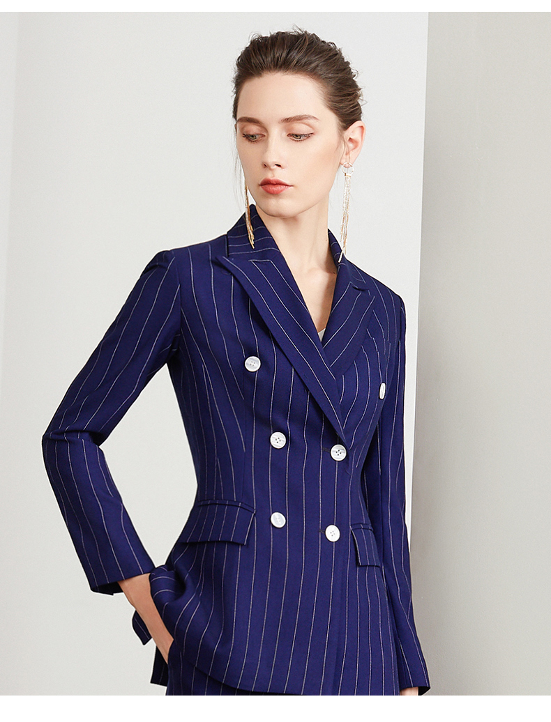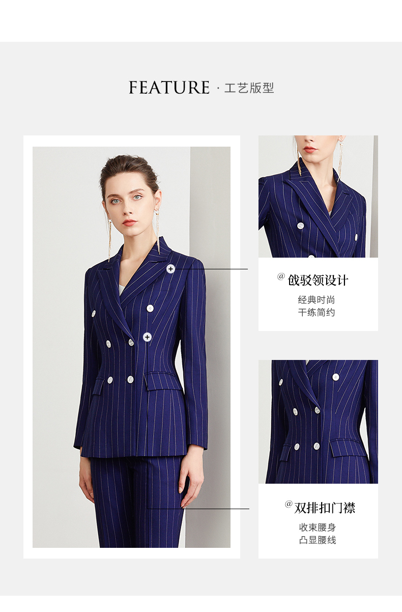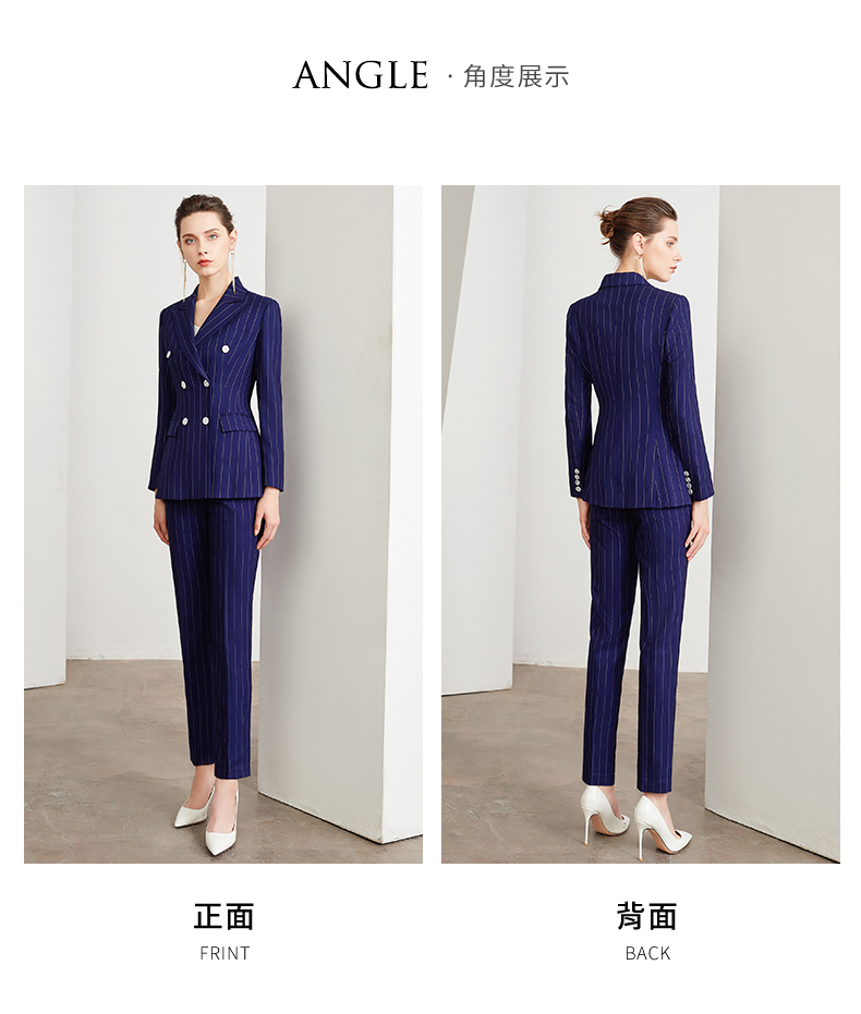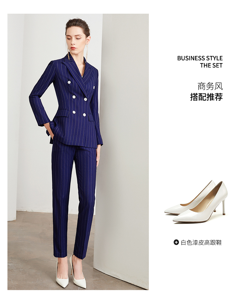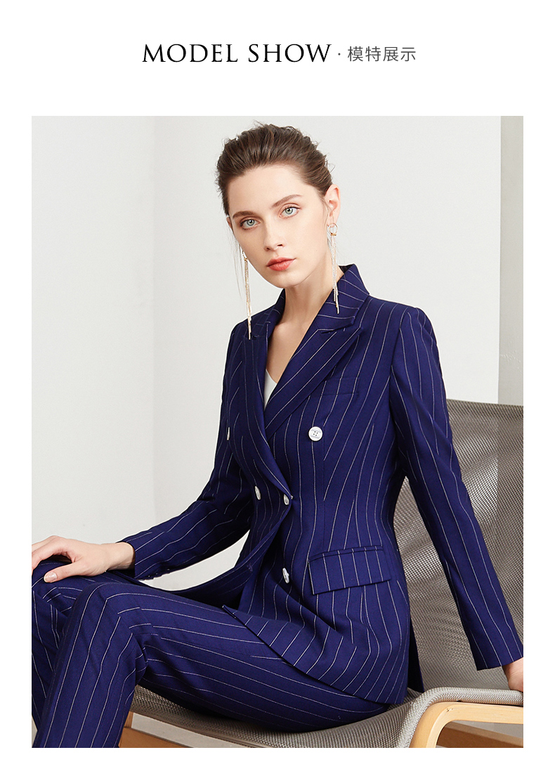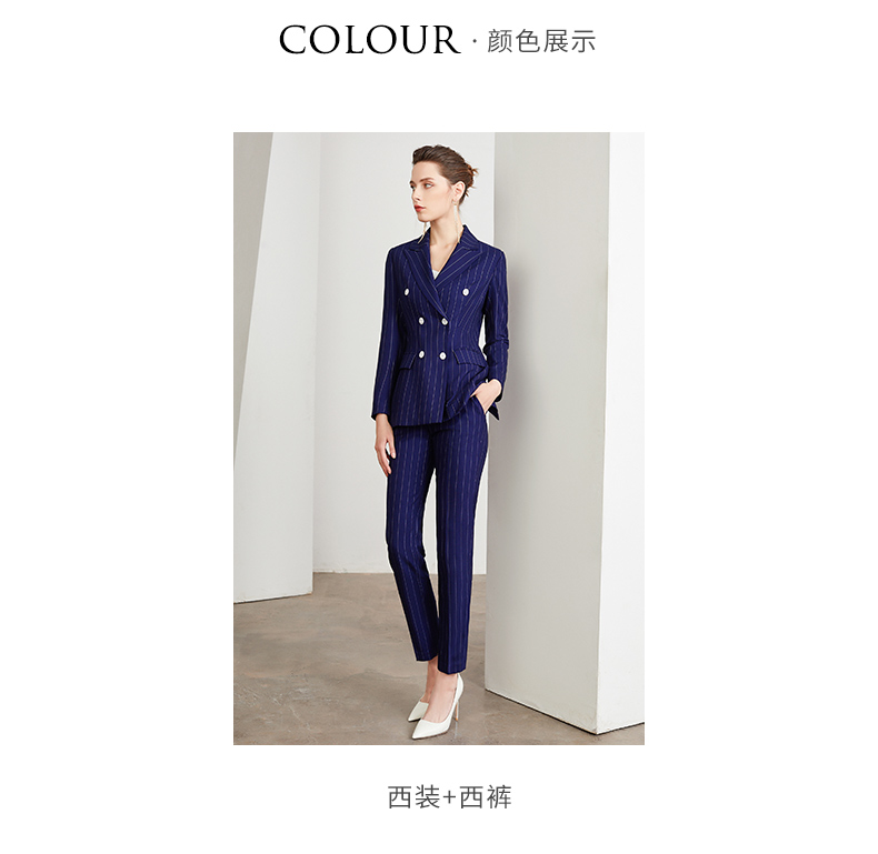 IWY/藏青色条纹西装套装女时尚双排扣职业装商务工作服上班正装CP871