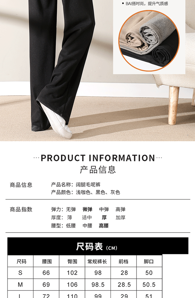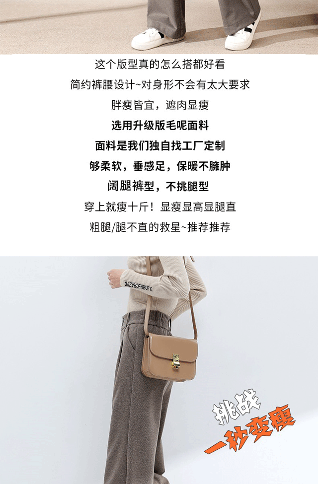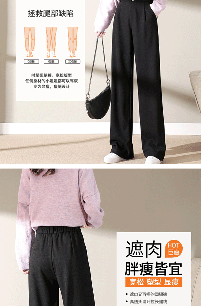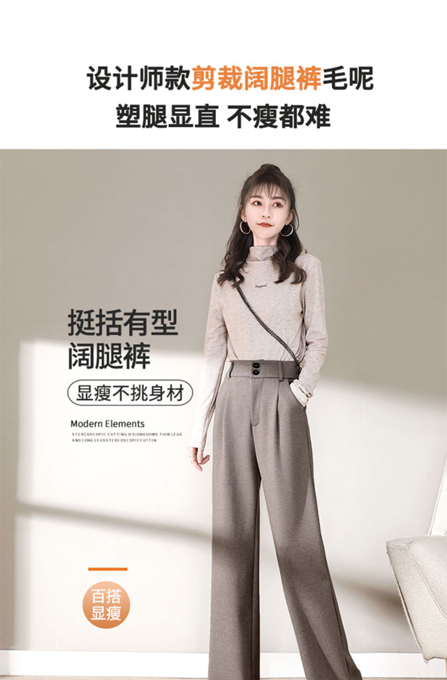 【遮肉毛呢西裤】秋冬垂感阔腿裤,羊绒般保暖垂顺,腿粗女孩的救星,上身显瘦10斤显高8cm