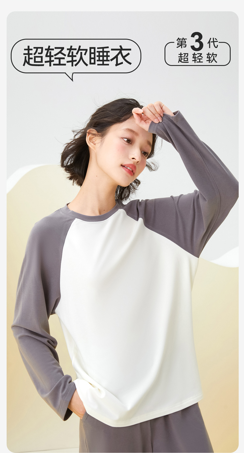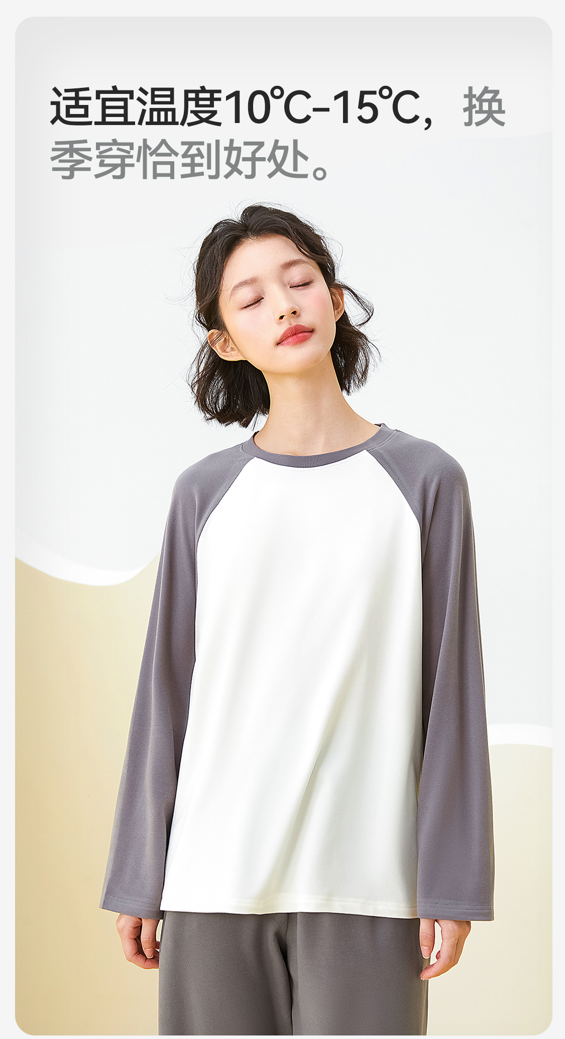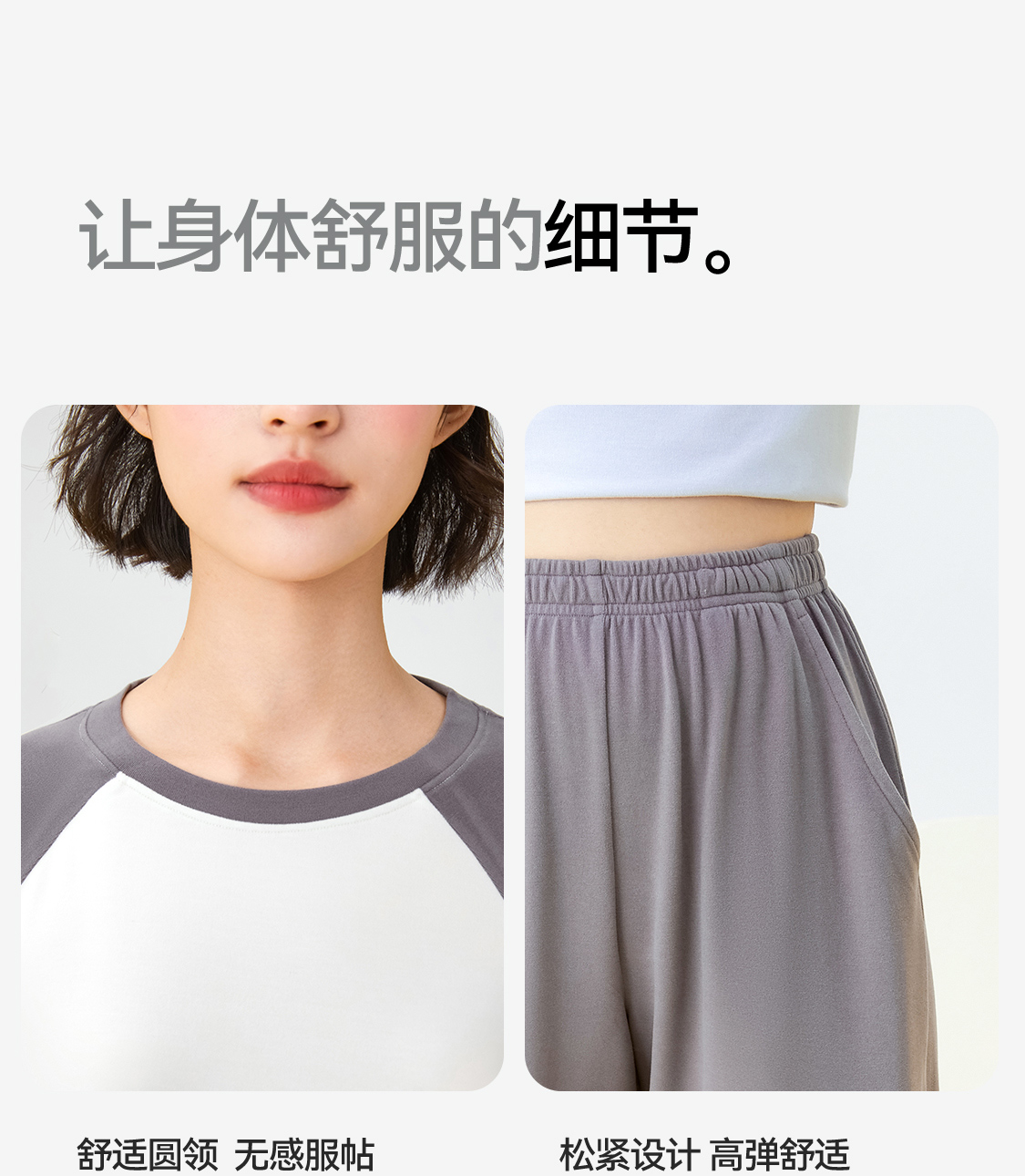 内茵 女bra撞色叉肩拼接套装 家居上衣