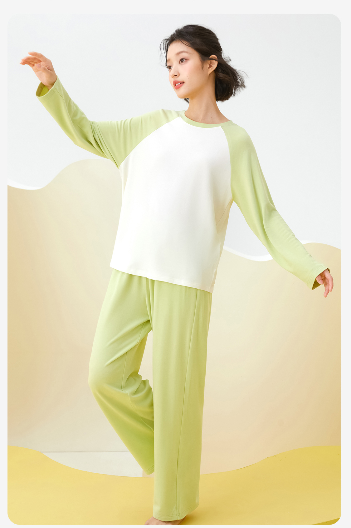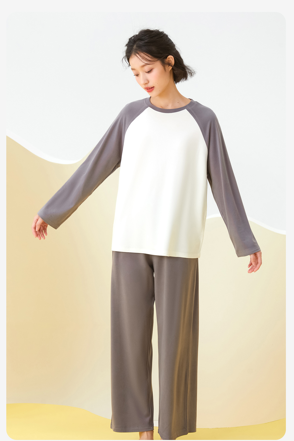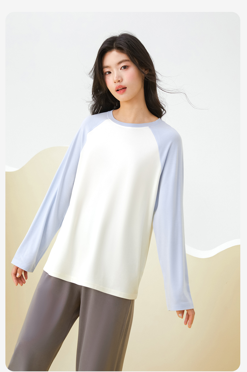内茵 女bra撞色叉肩拼接套装 家居上衣