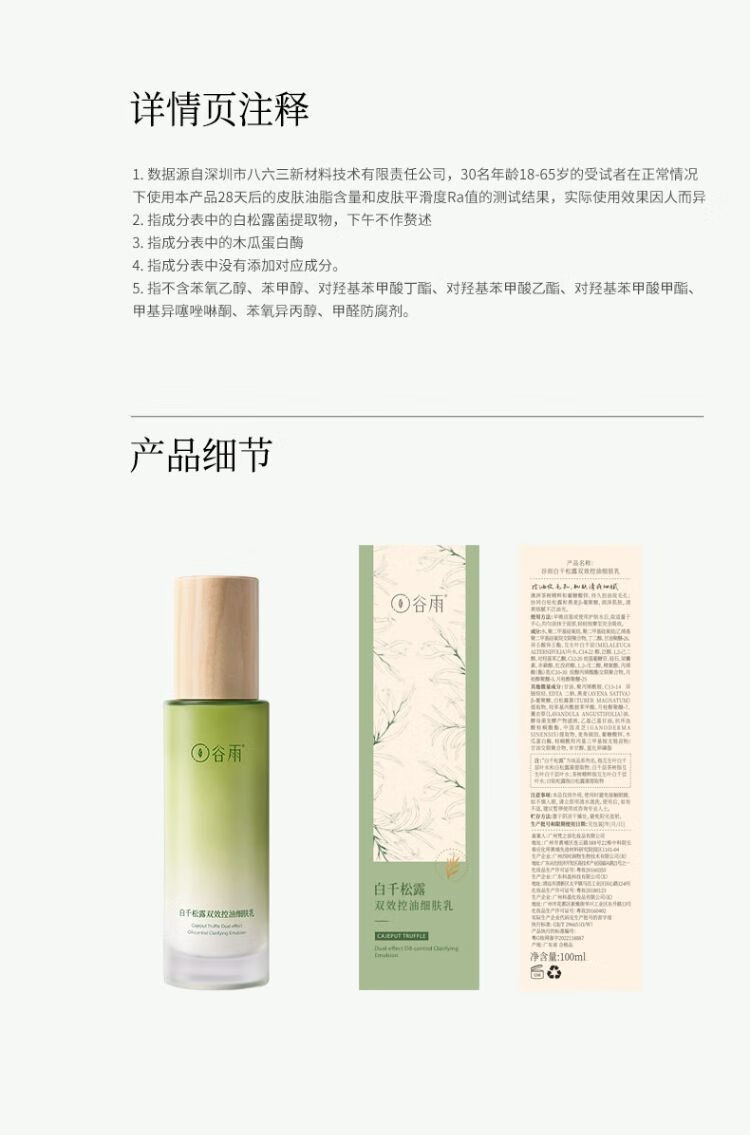 谷雨白千松露双效控油细肤乳100ml/瓶