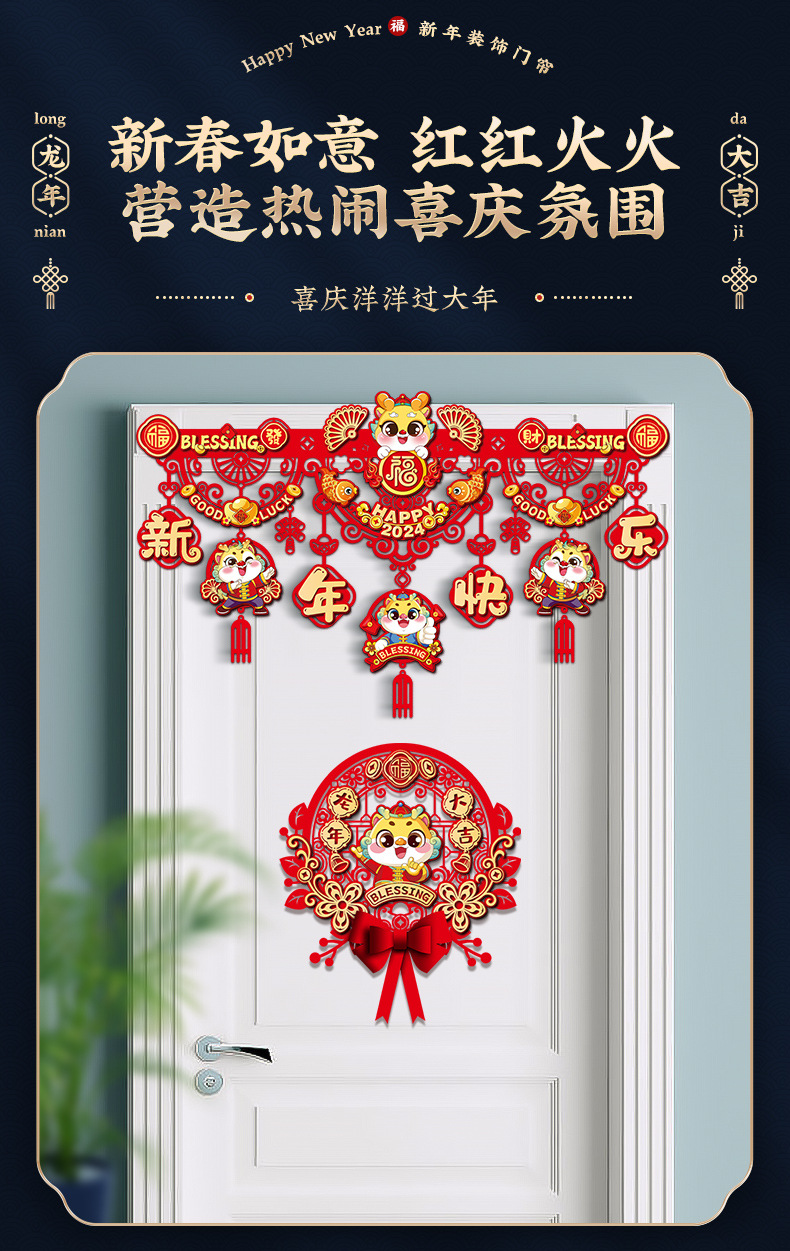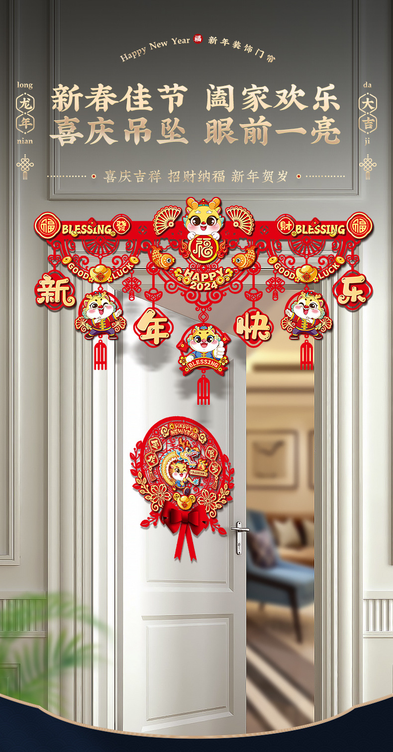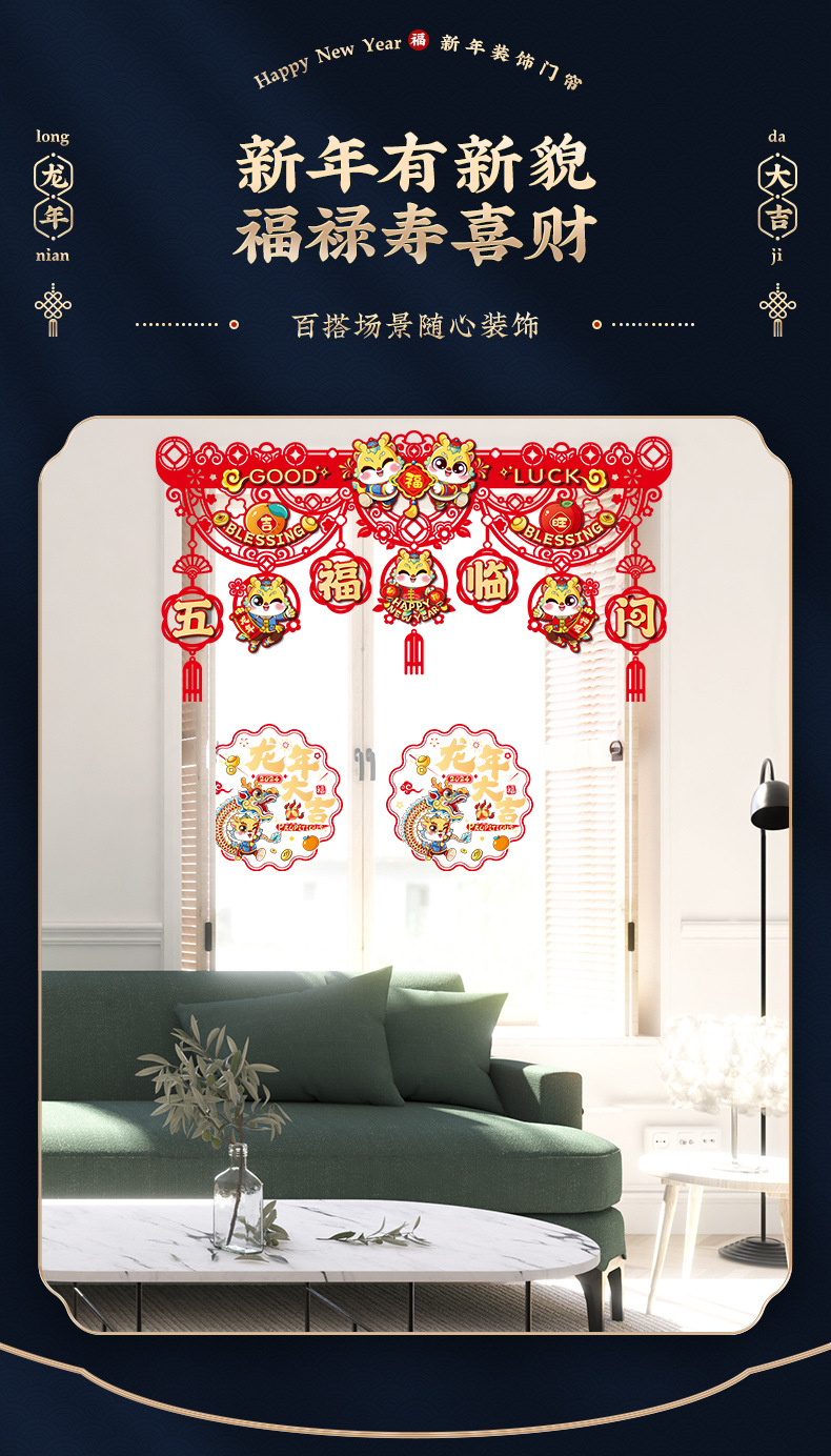 2024龙年春节新年装饰拉花挂件过年家用福字门帘挂饰元旦场景布置