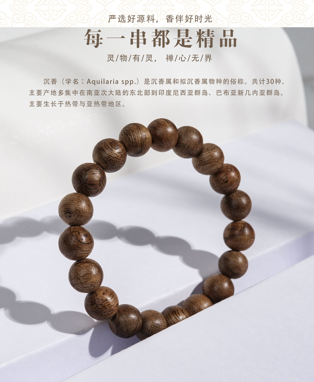 绿奇楠圆珠沉香手串 棋韵明显 甜香浓郁 1.4*15颗标准圆珠 12g左右 20091729
