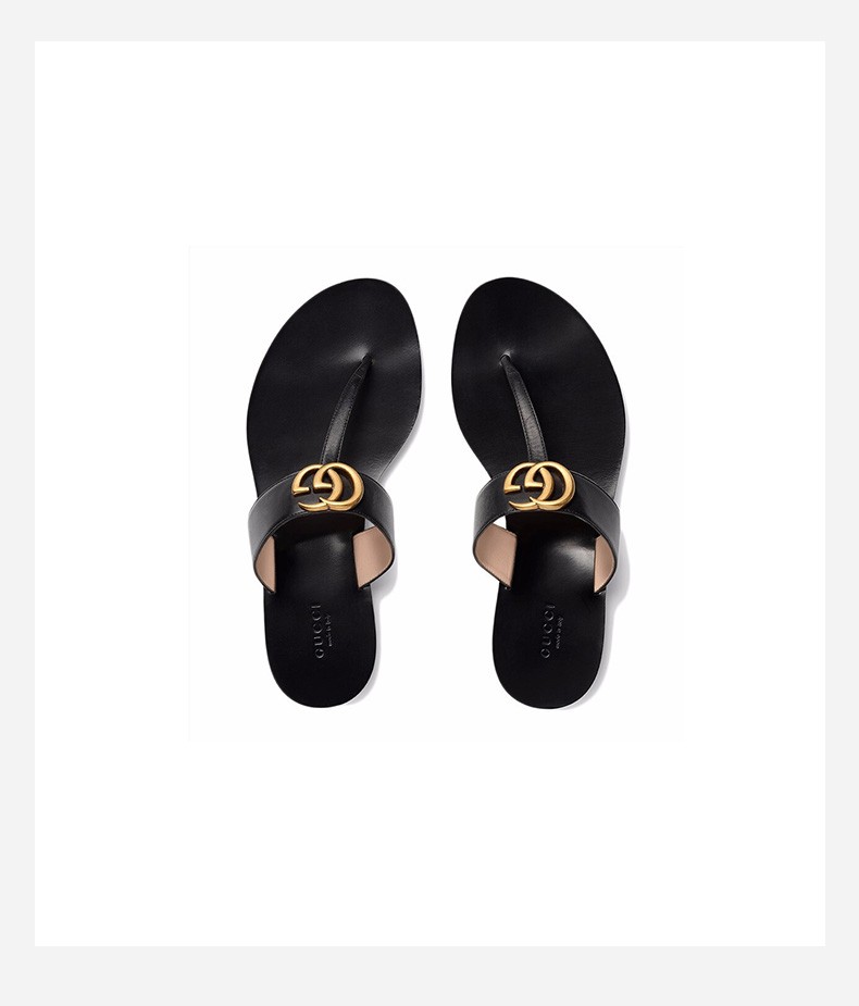 GUCCI 古驰 女士双G带缀饰皮革凉鞋 人字拖 497444 A3N00