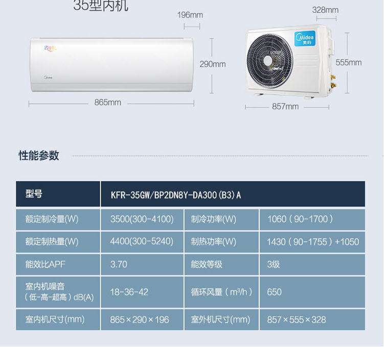 美的(Midea)1.5匹 变频冷暖 空调挂机 省电星 KFR-35GW/BP3DN8Y-DH400(3)