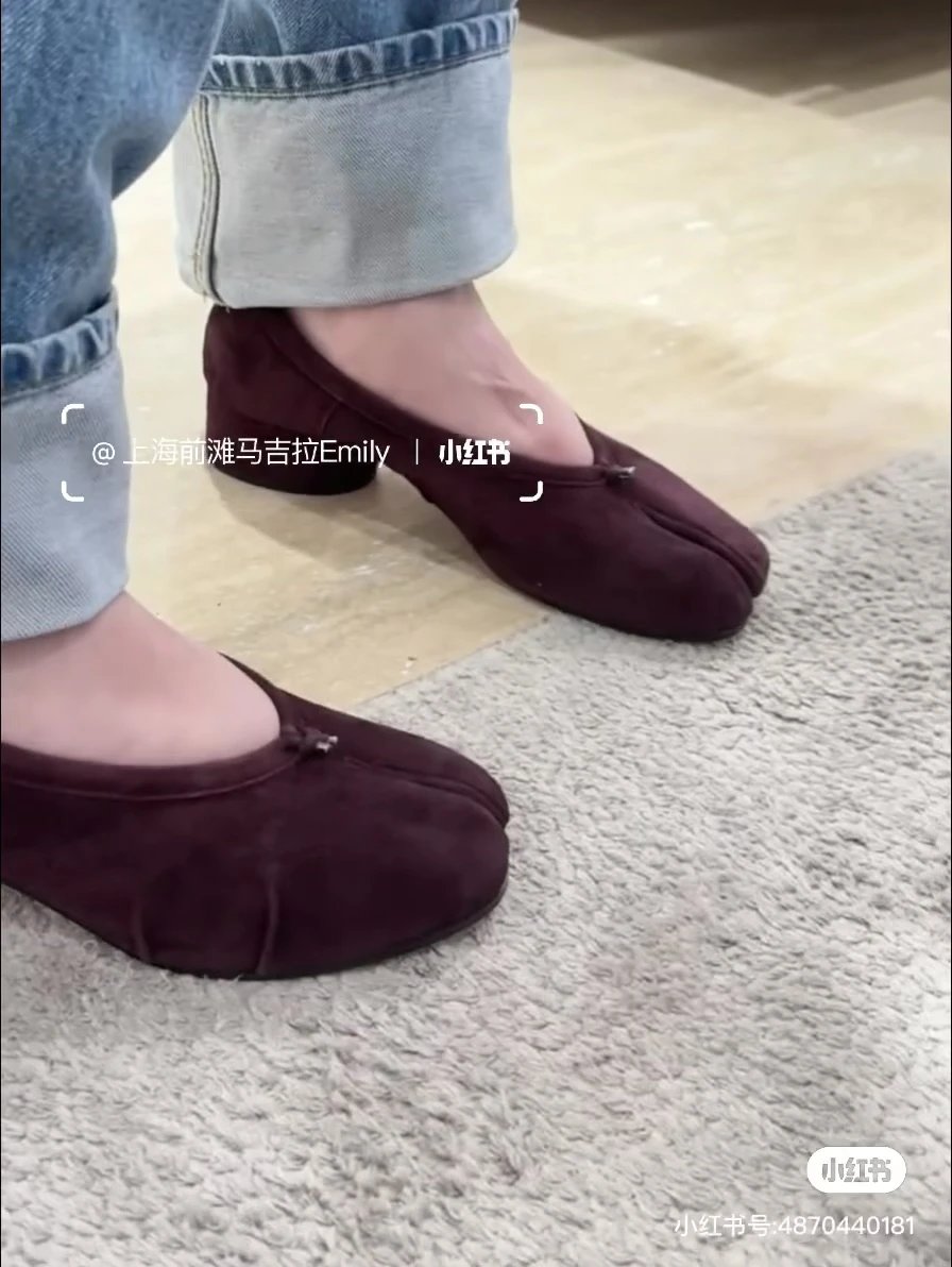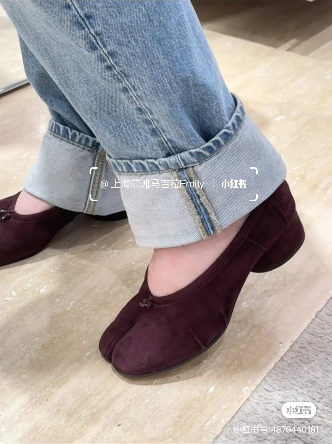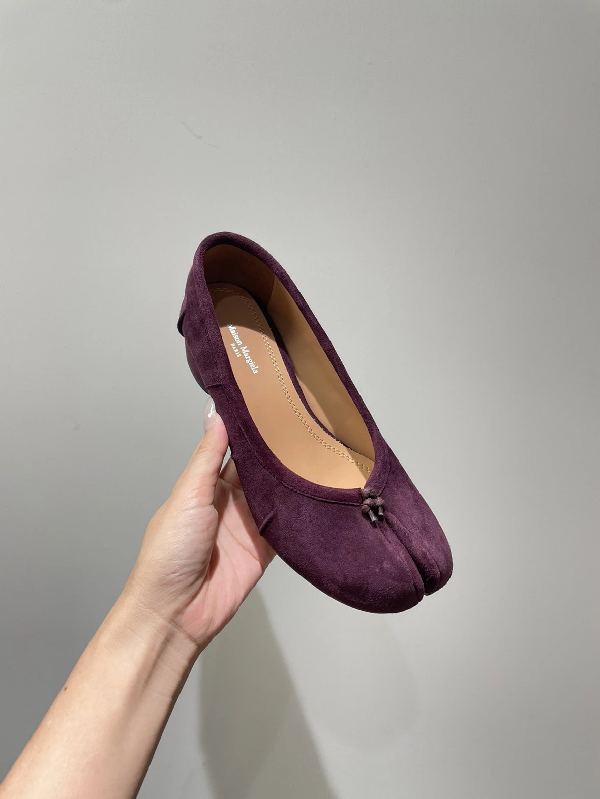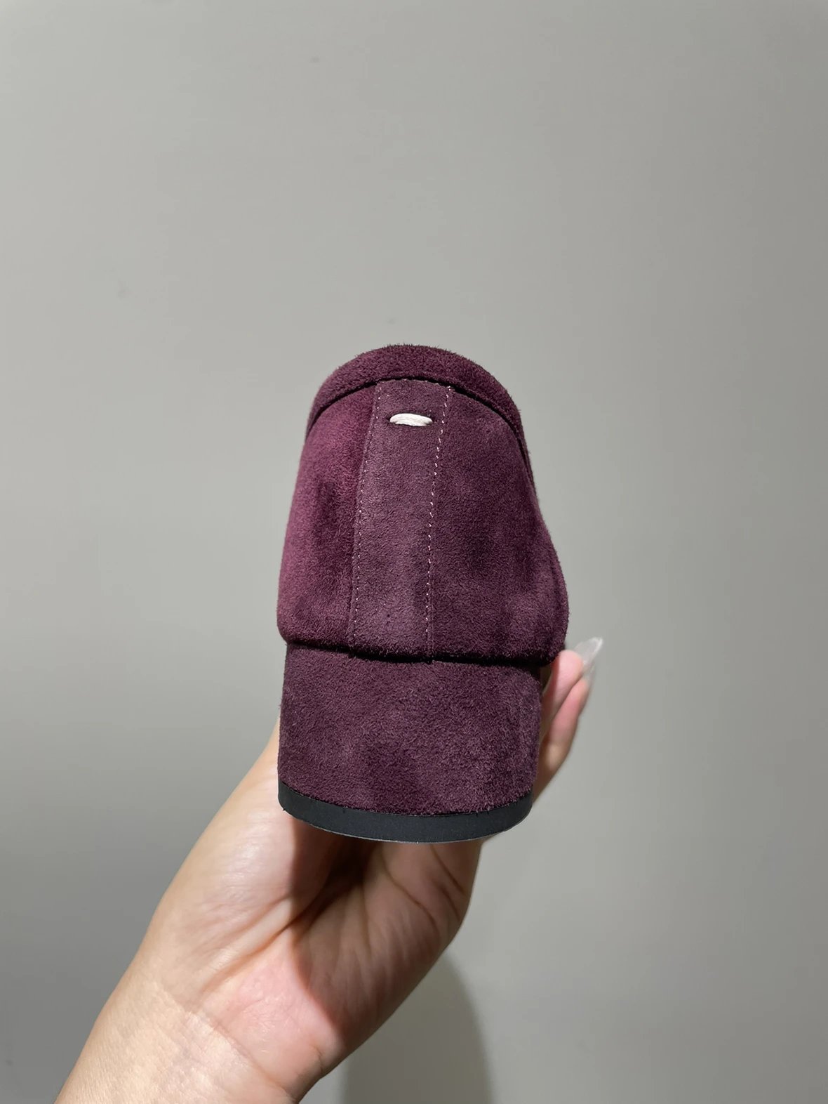 重磅推荐 经典款! 麂皮tabi分趾鞋 4cm 麂皮一脚蹬单鞋 MM6猪蹄鞋