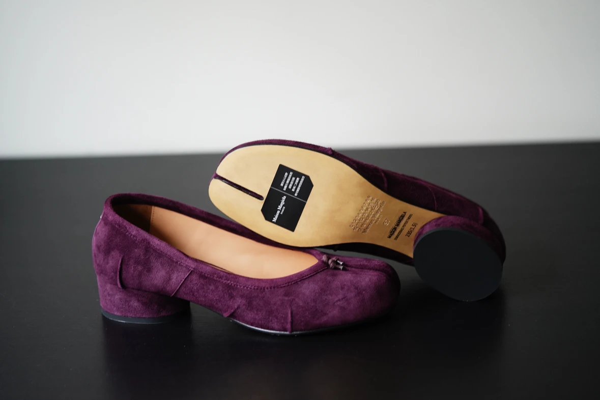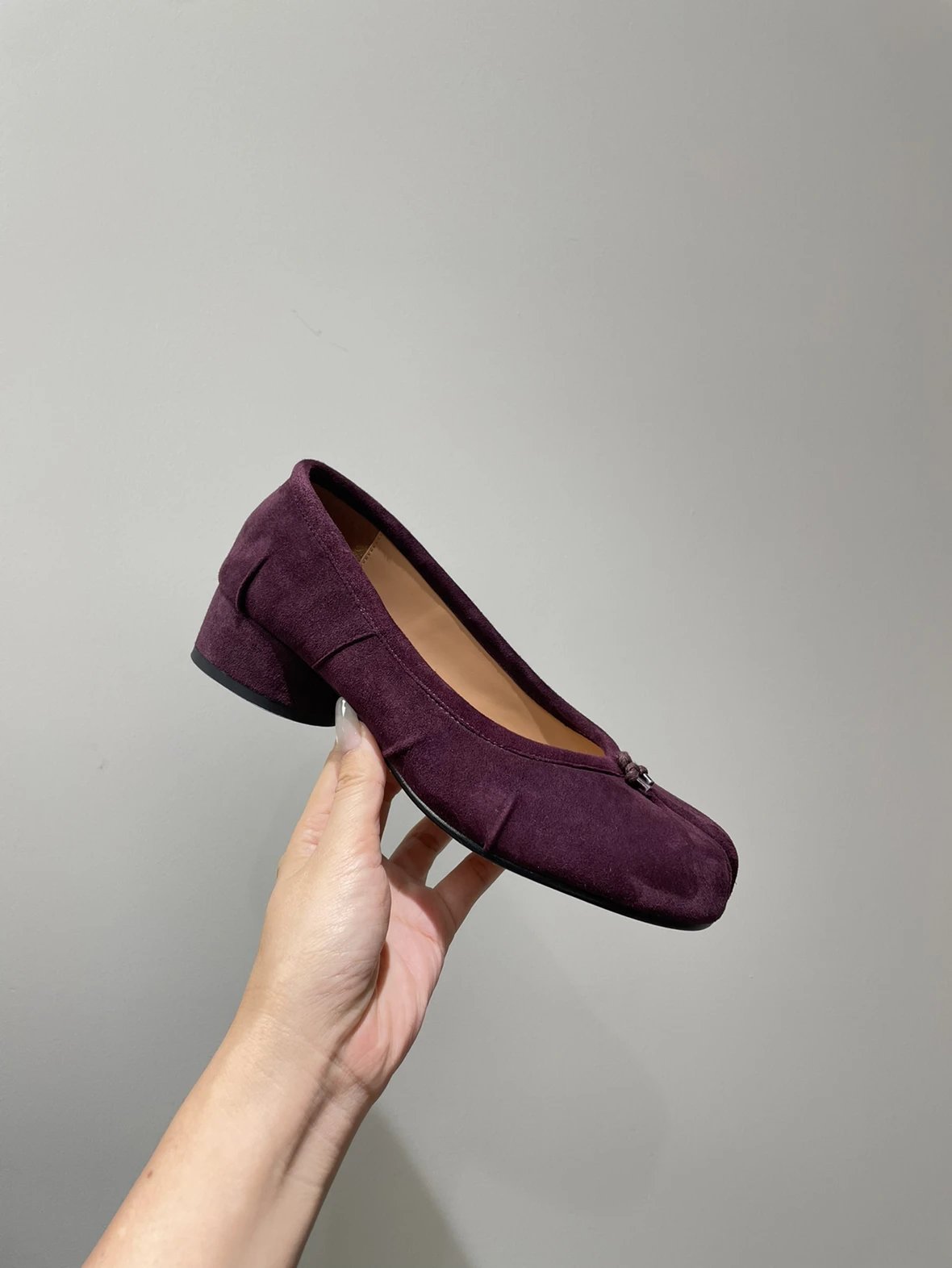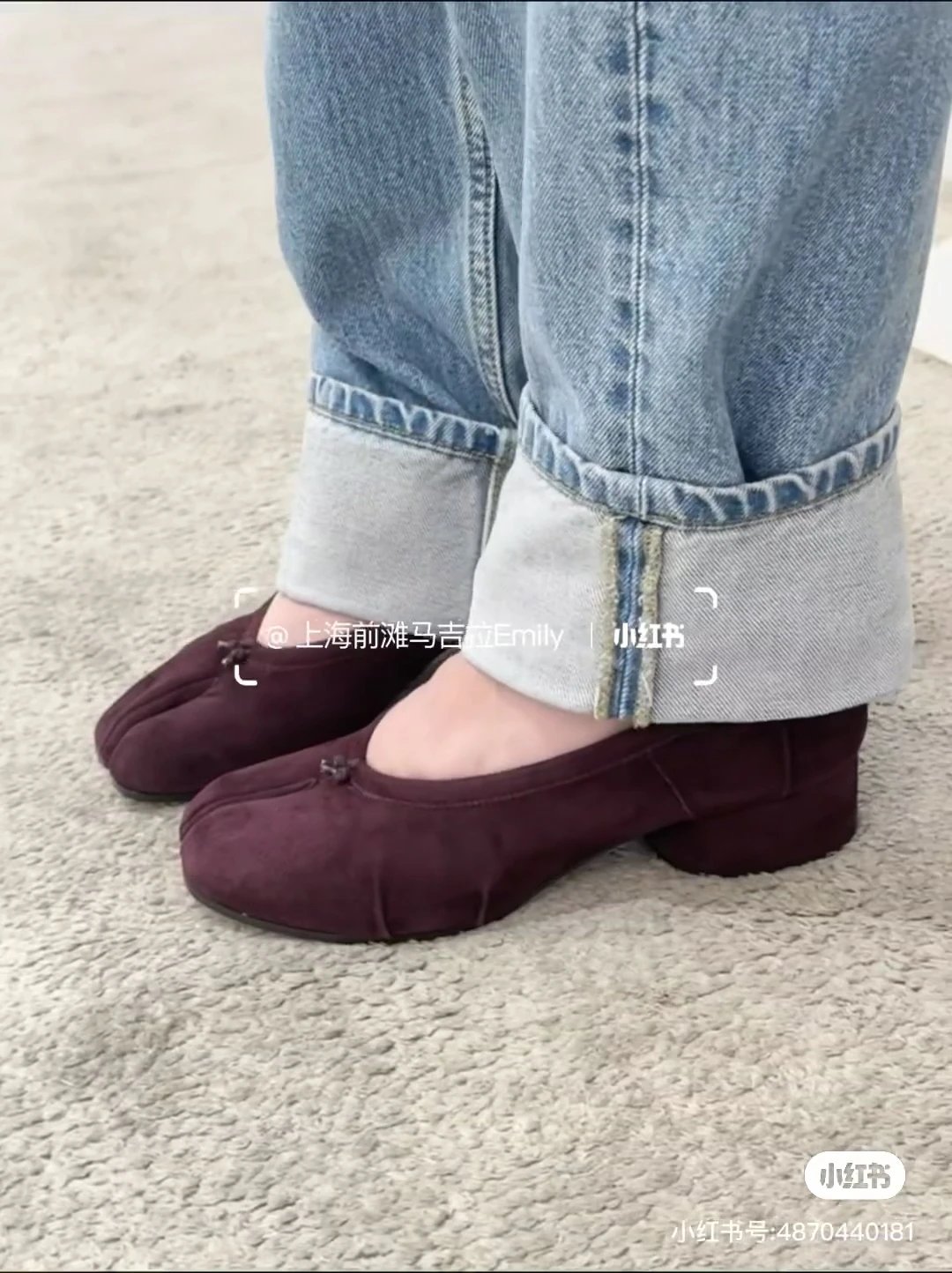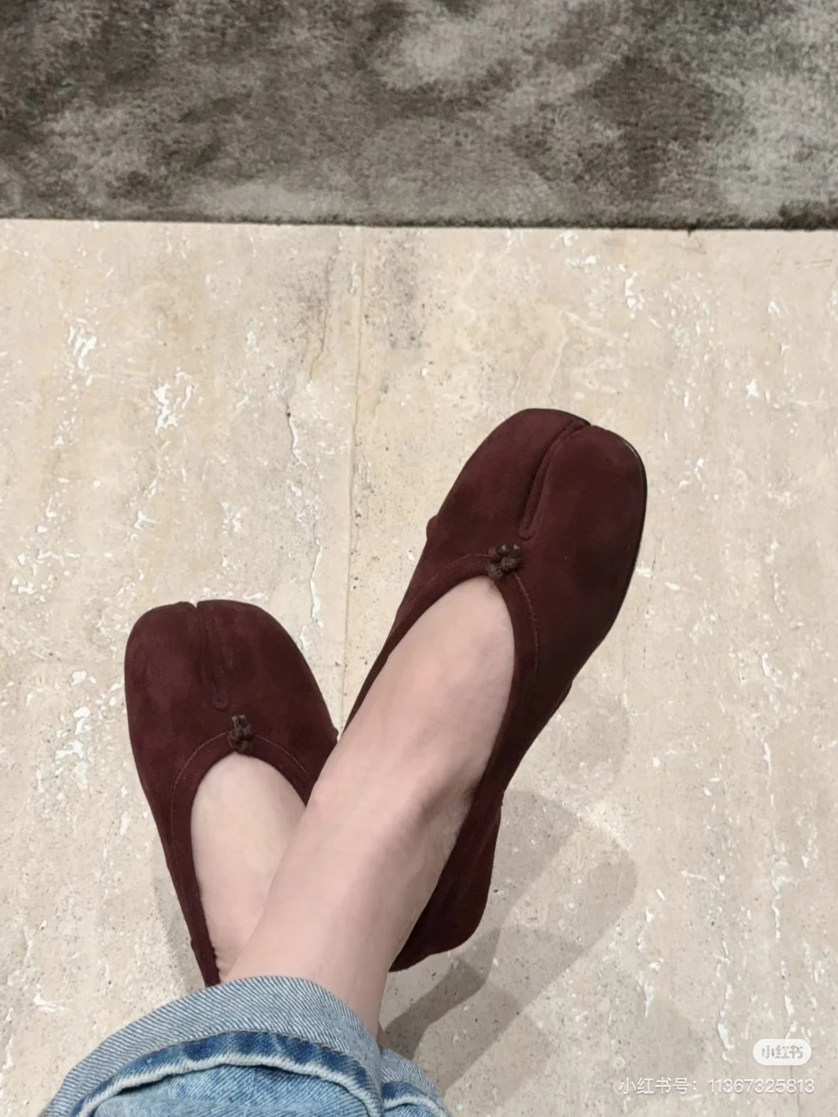 重磅推荐 经典款! 麂皮tabi分趾鞋 4cm 麂皮一脚蹬单鞋 MM6猪蹄鞋