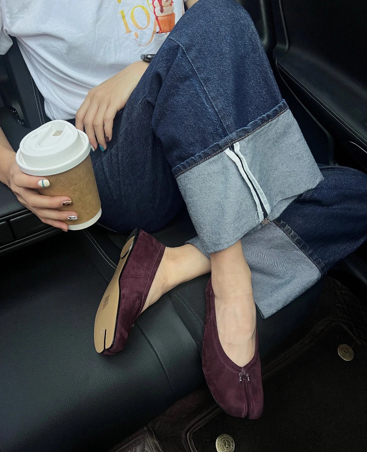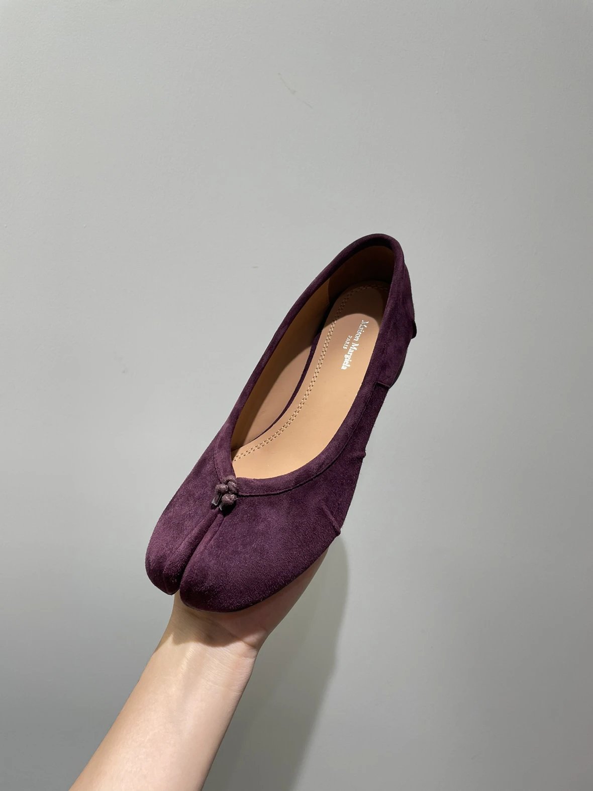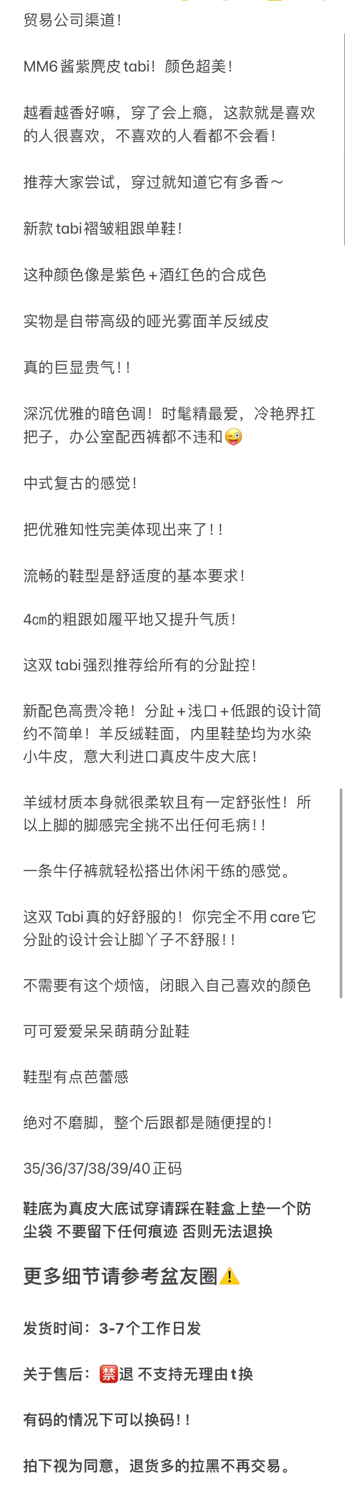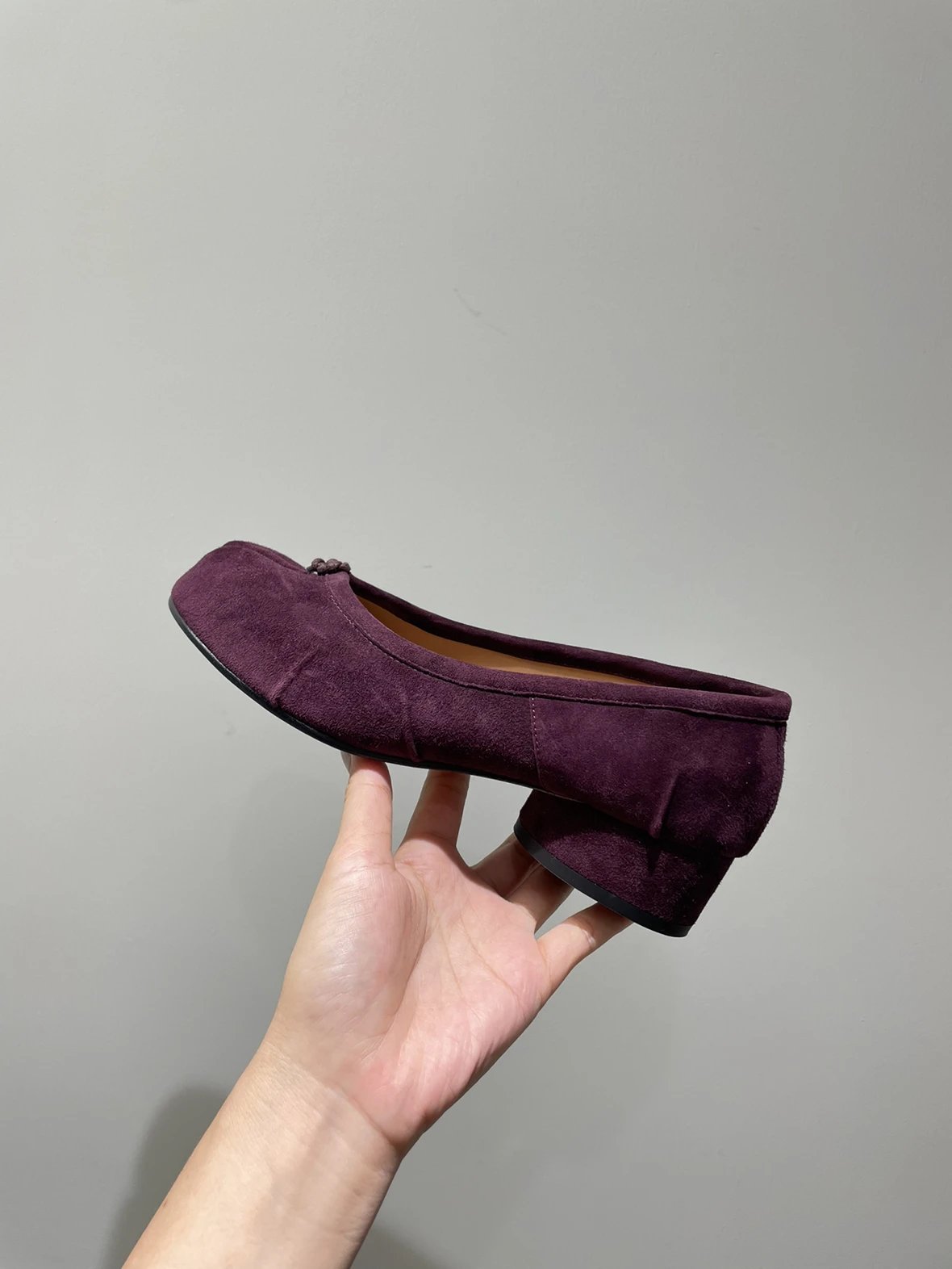 重磅推荐 经典款! 麂皮tabi分趾鞋 4cm 麂皮一脚蹬单鞋 MM6猪蹄鞋