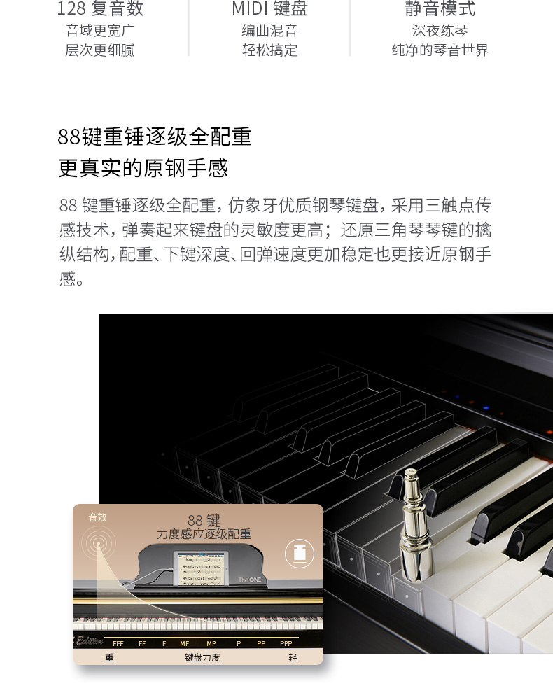 【郎朗力荐】TheONE智能钢琴TOP1s 烤漆家用轻奢 88键重锤电钢琴