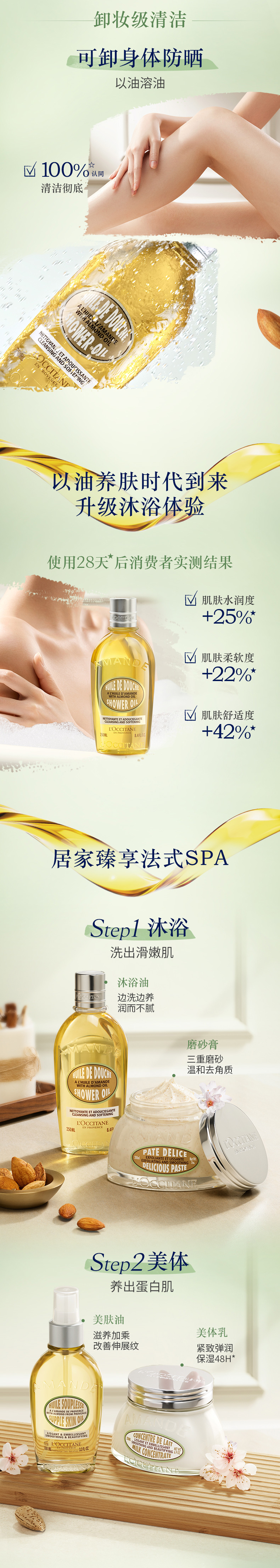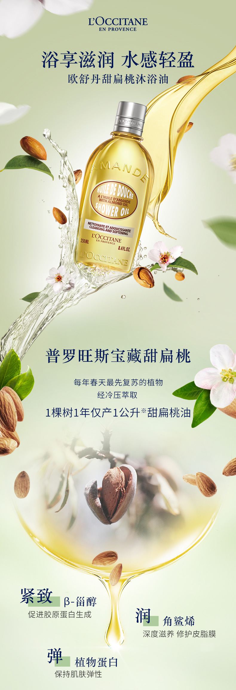 欧舒丹甜扁桃紧致沐浴油250ml 全身清洁 舒缓保湿 温和洁净 沐浴露 美肤沐浴乳 送礼甄选 礼物礼盒