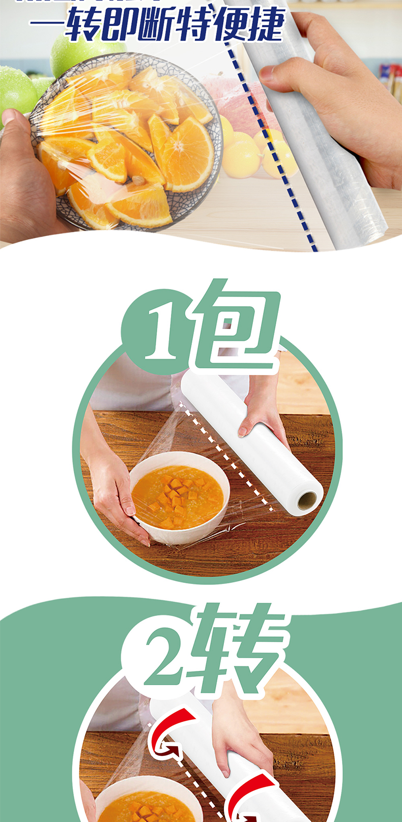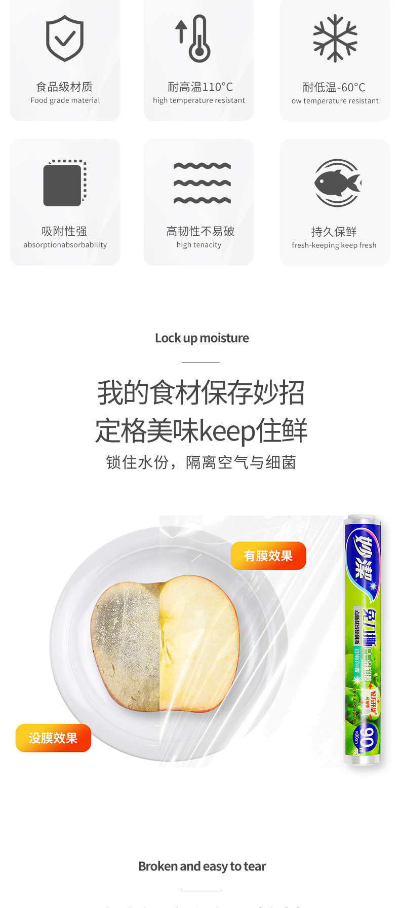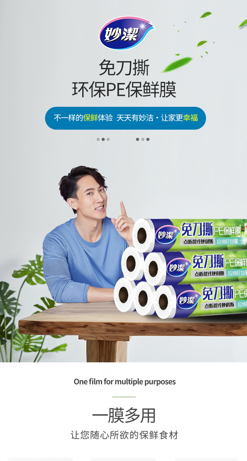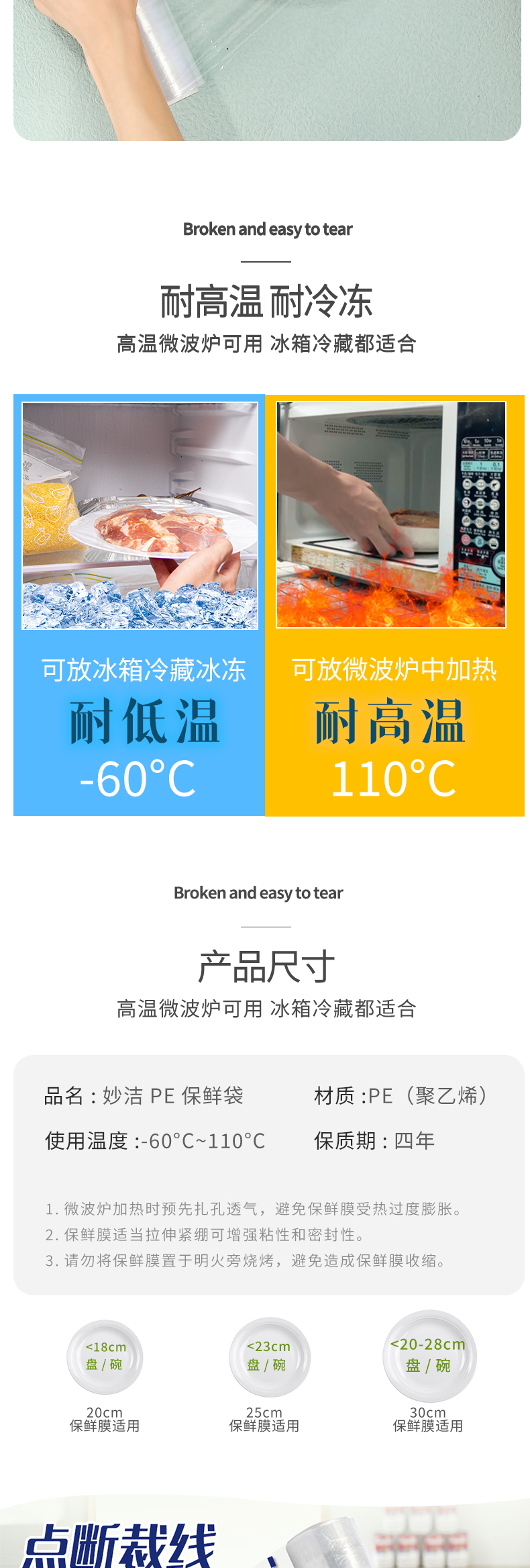 妙洁保鲜膜 套点断式食品家用经济大卷pe保鲜膜套厨房