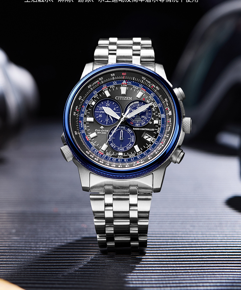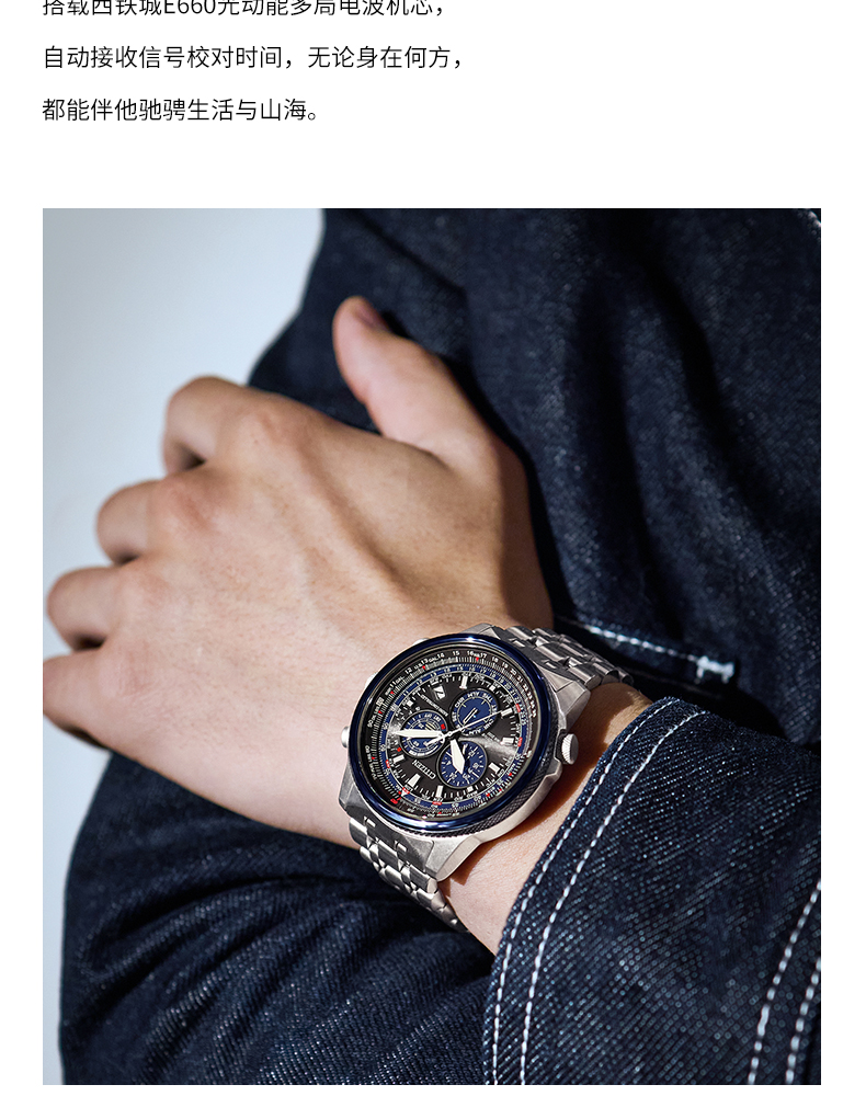 西铁城日本官方正品潮流休闲光动能电波男士手表CB5004-59W
