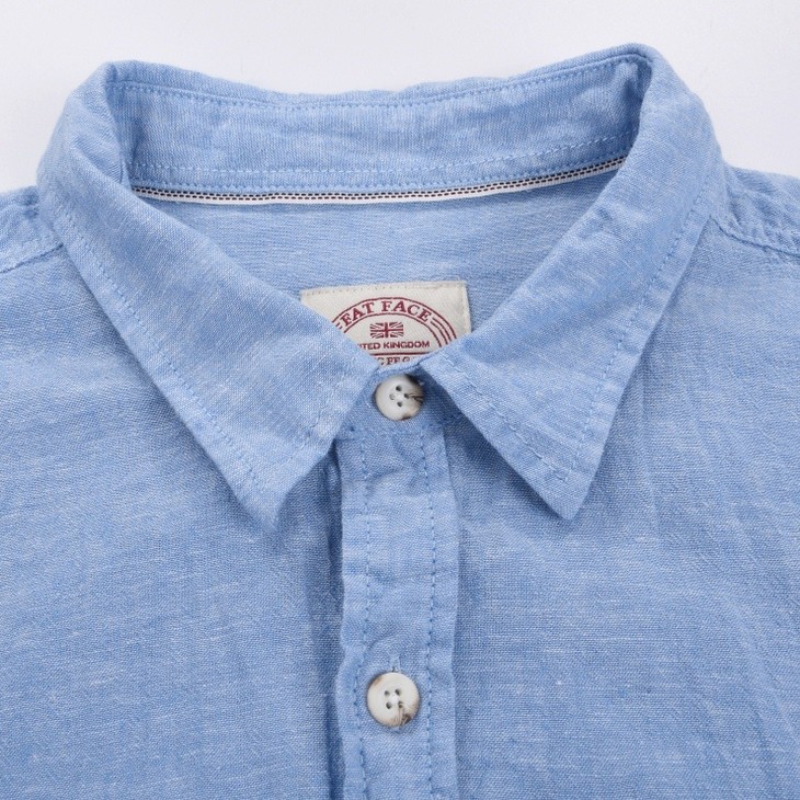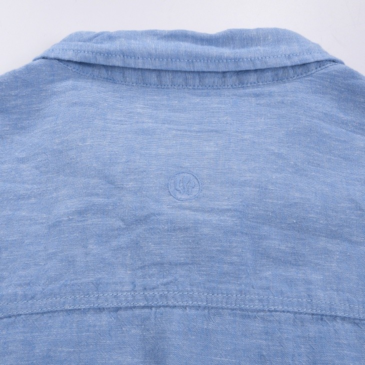 英国品牌。52%亚麻48%棉亲肤舒适。有亚麻制品特有面料结节。胸前口袋,领后精致刺绣小标!少数无领标无衬条随机发!简约设计!外网60刀售罄!适合夏天休闲百搭!