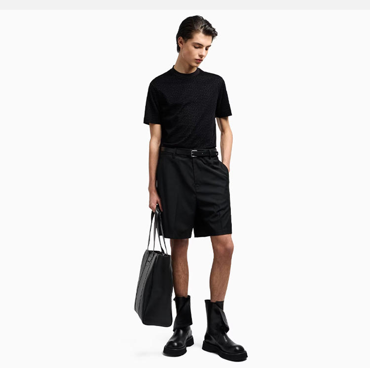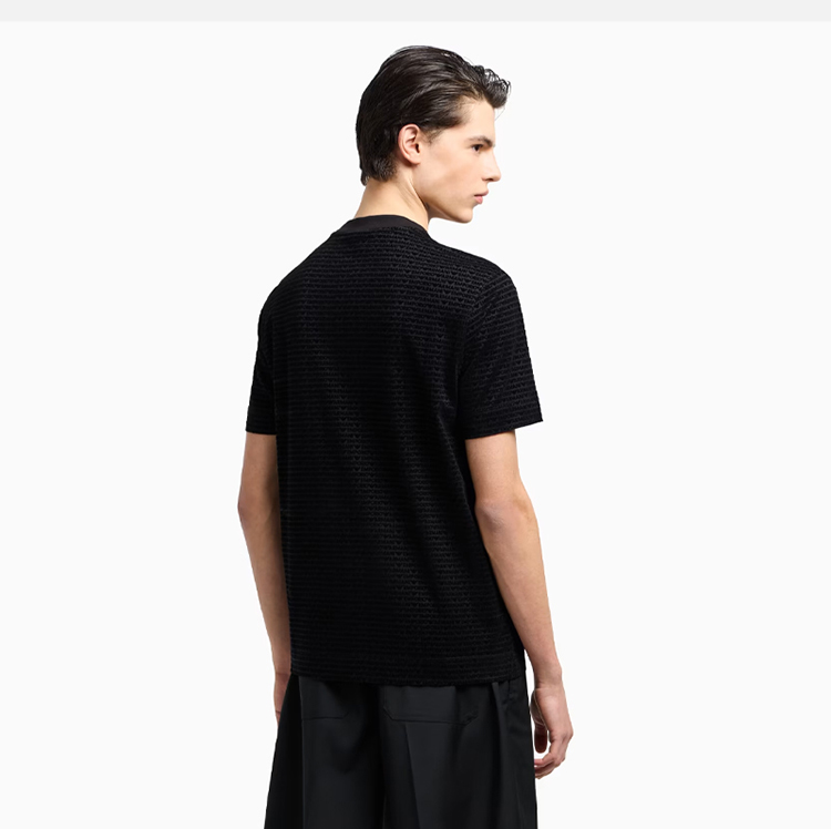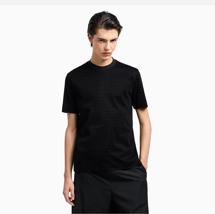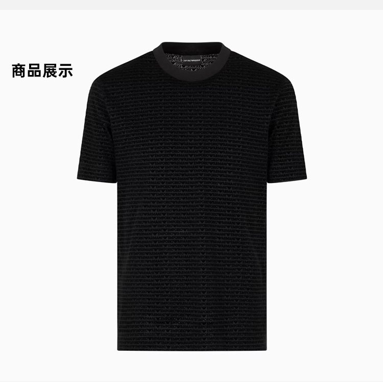 EMPORIO ARMANI 阿玛尼 男士字母小鹰徽标提花莱赛尔混纺针织圆领短袖T恤 黑色 EM001288 AF10017 FC159