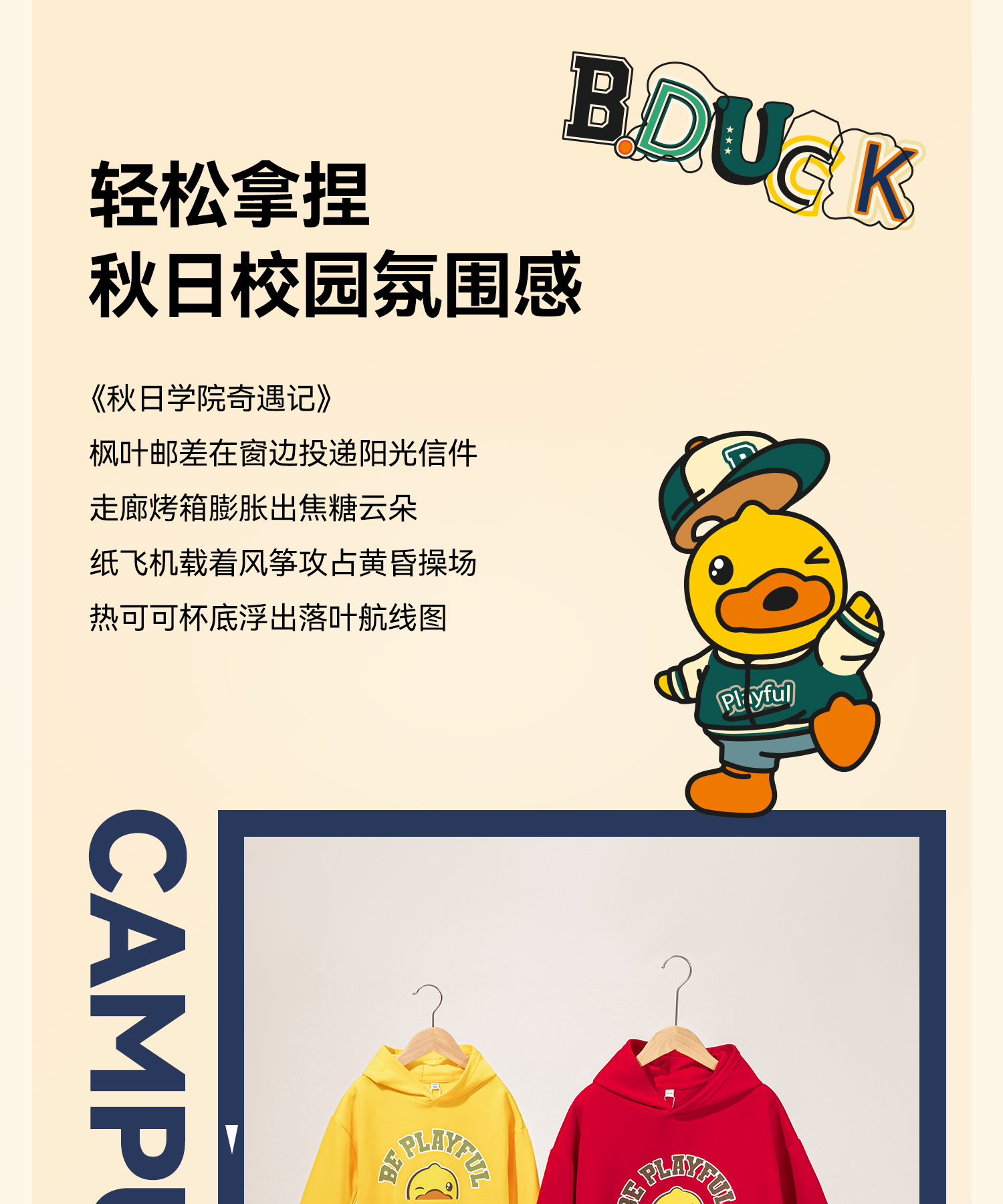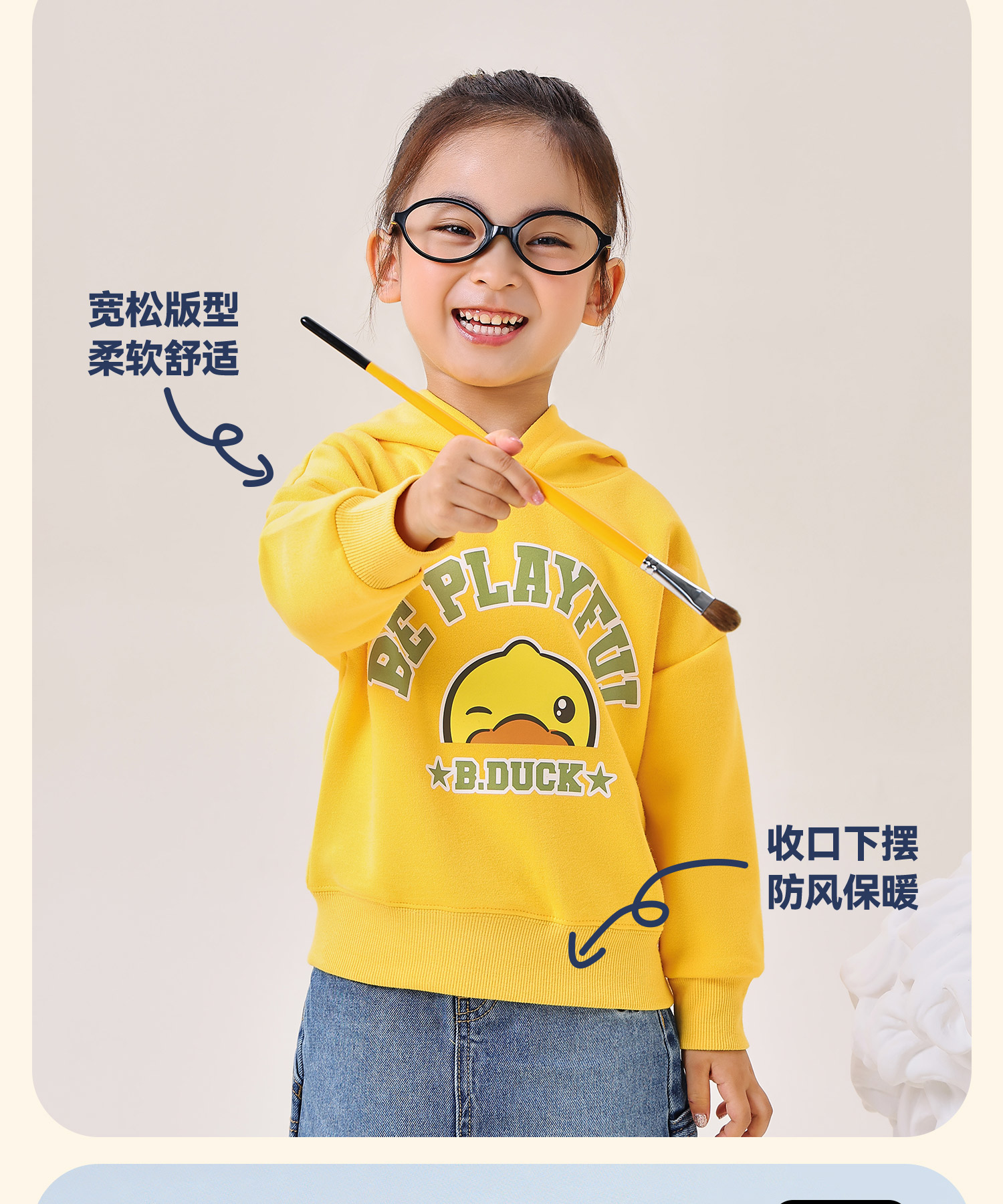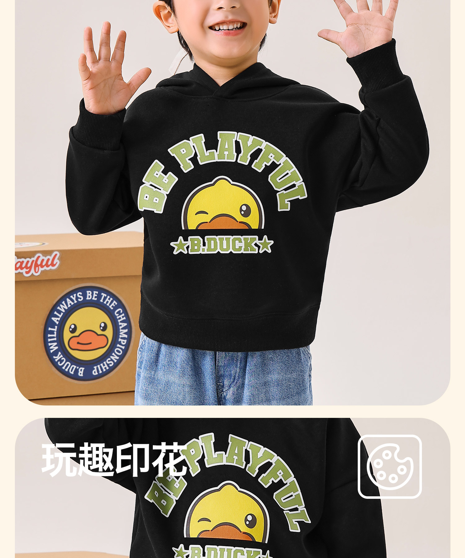 B.Duck小黄鸭童装春秋连帽卫衣110-170 BF3608075