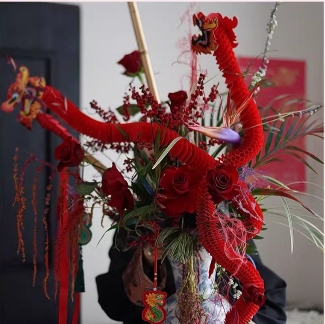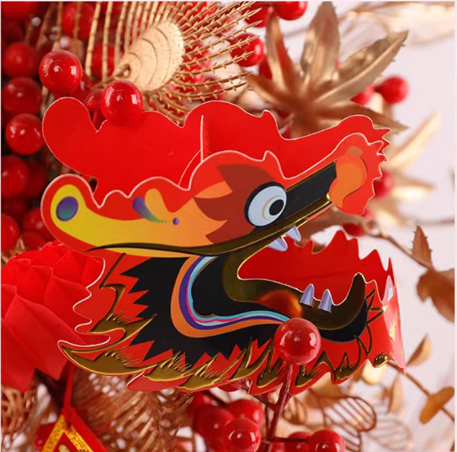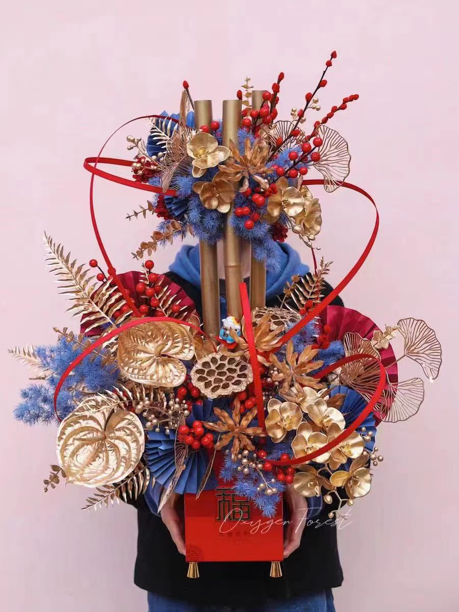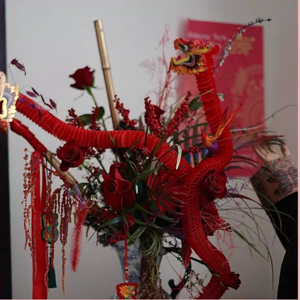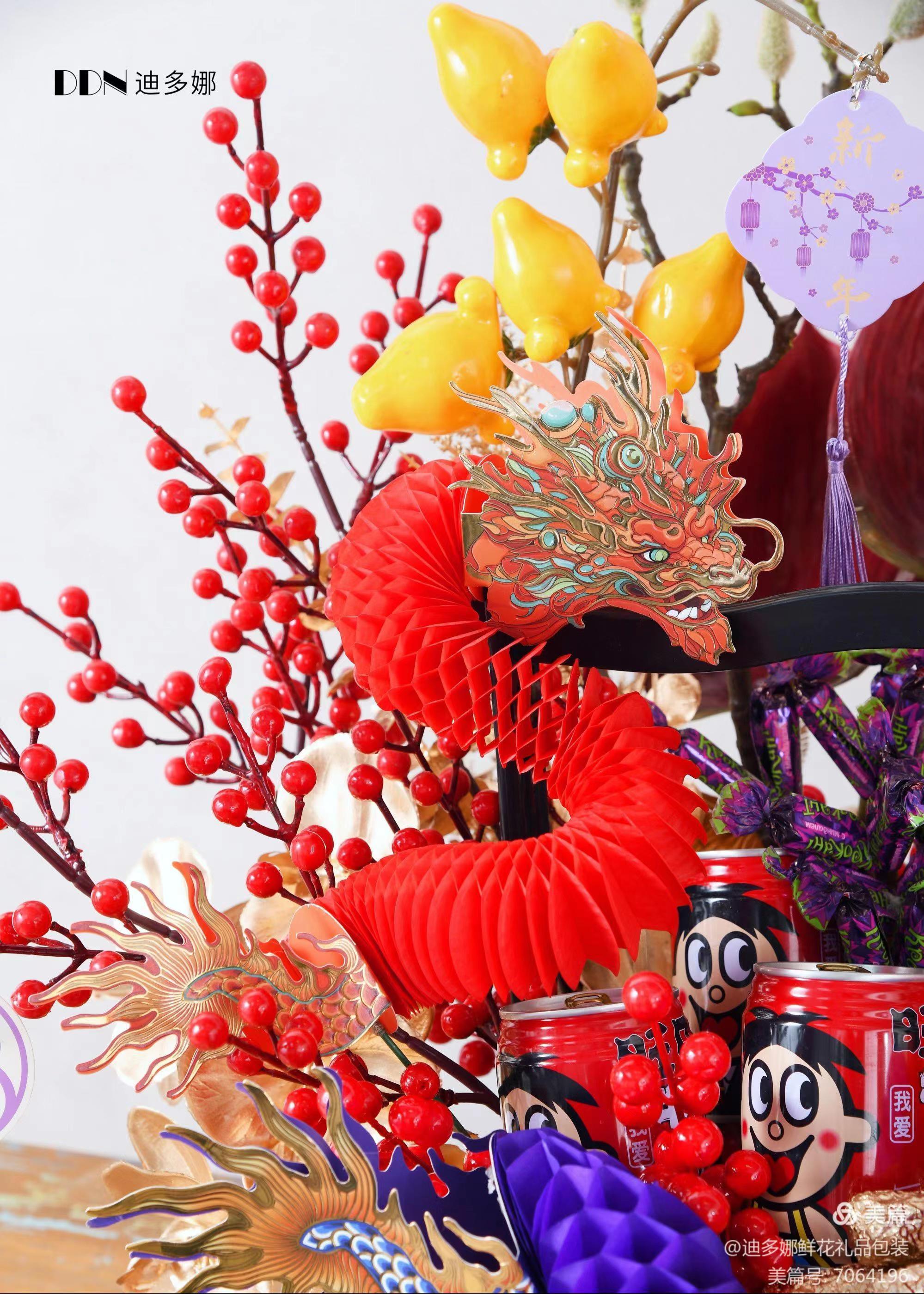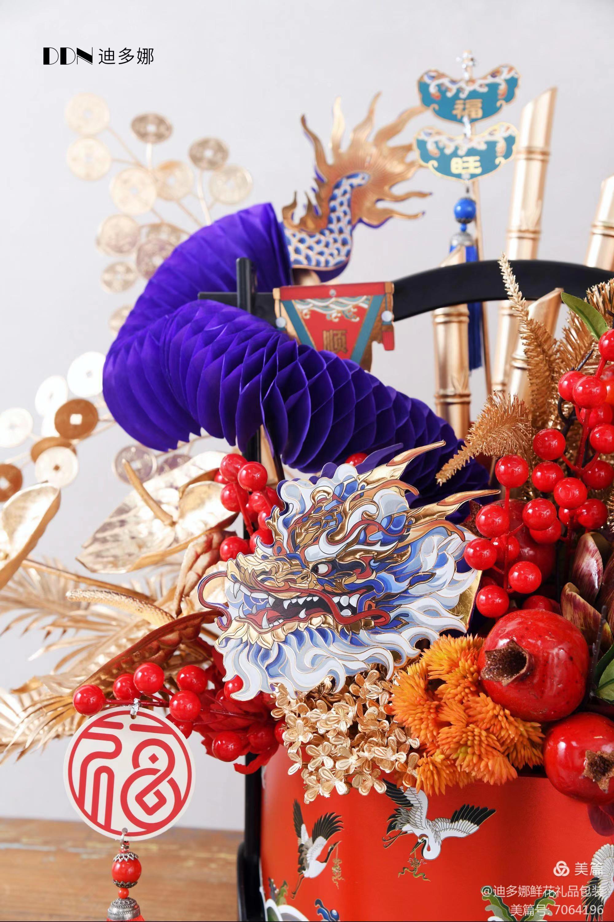 新年福桶装饰---折扇--小灯笼-富贵龙 --招福金竹