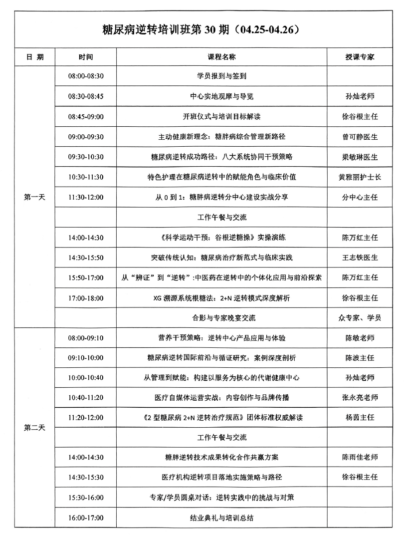 【课程报名】《第 30 期糖尿病逆转培训班-徐谷根教授团队》