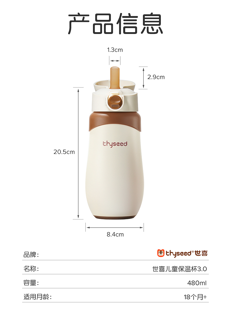 世喜 儿童保温杯480ml 套装 保温杯+杯套