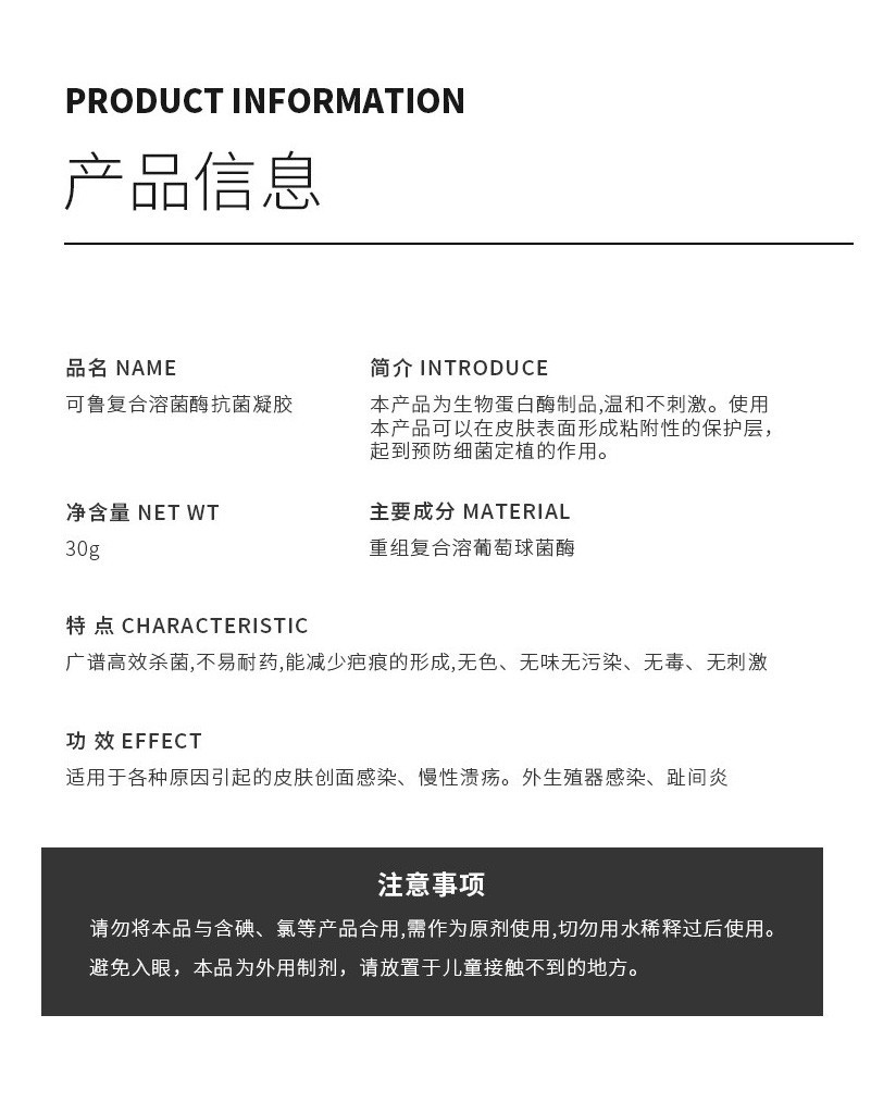 可鲁复合溶菌酶抗菌凝胶30g 商品图4