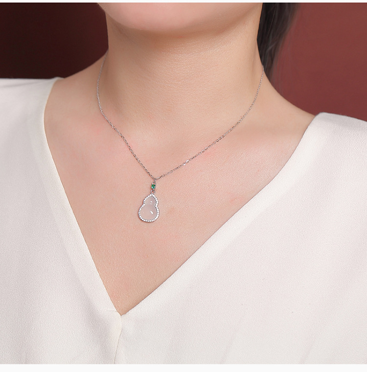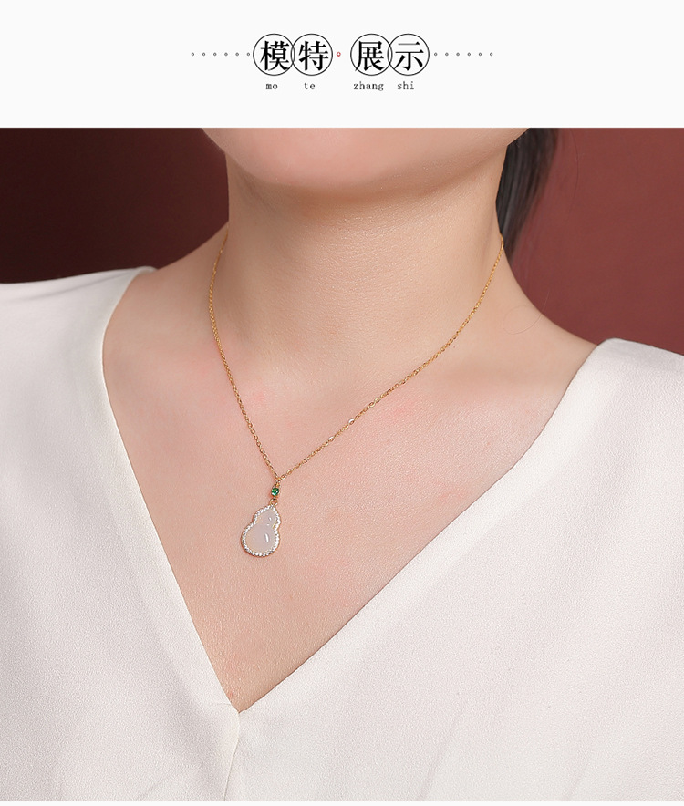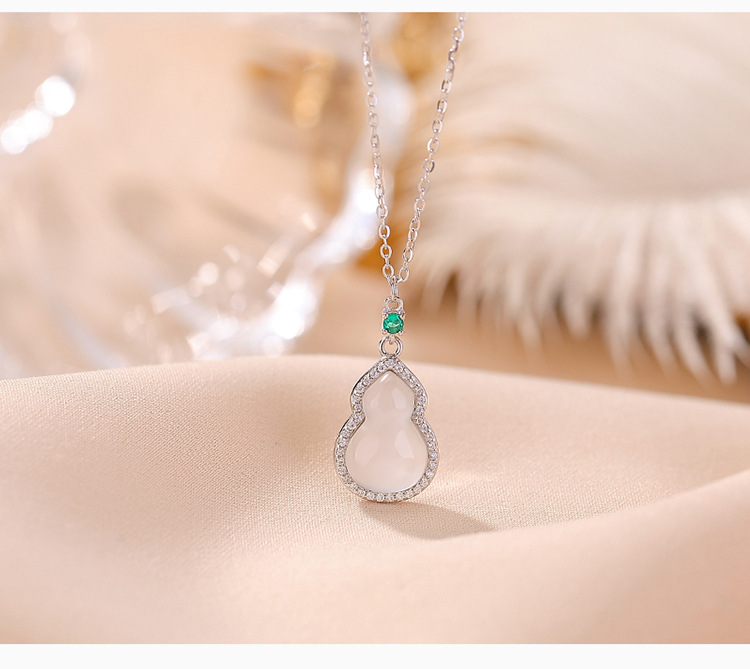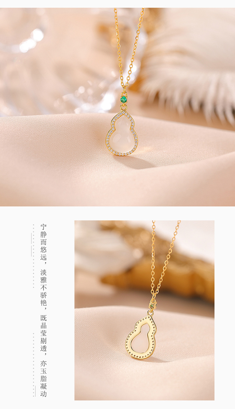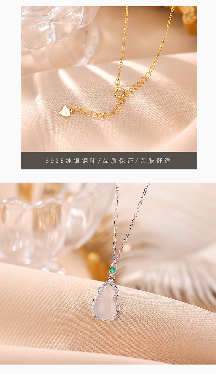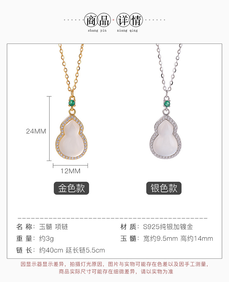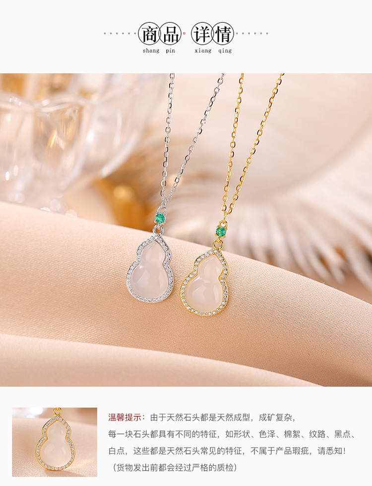 【福禄沉醉】S925纯银镀金白玉髓葫芦吊坠套链【CW-XL00492】