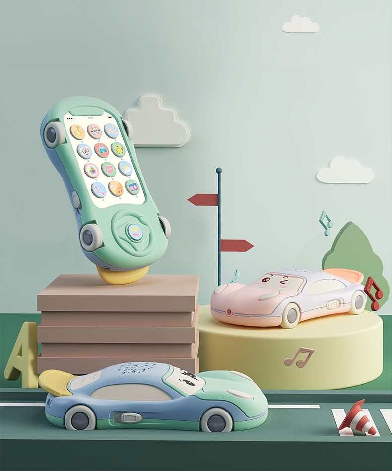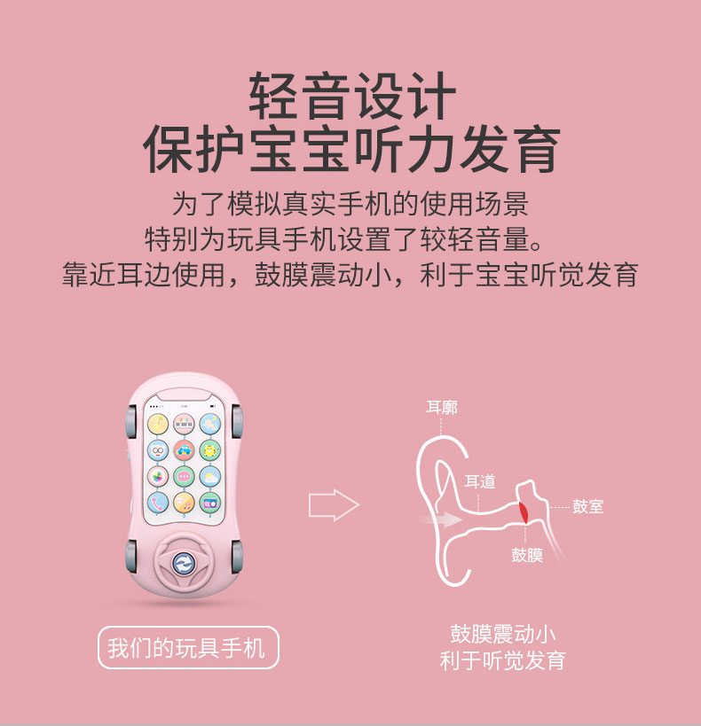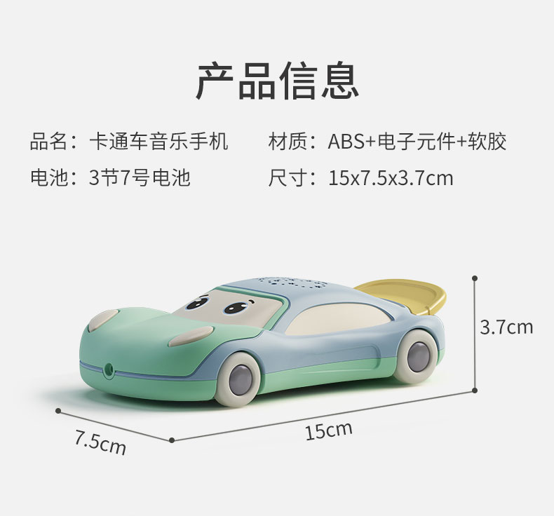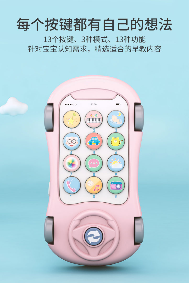 儿童卡通车汽车音乐手机 音乐投影 益智早教故事机(含手机绳+螺丝刀+3节电池 )