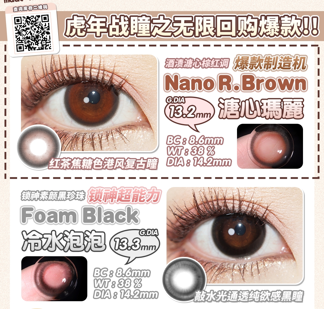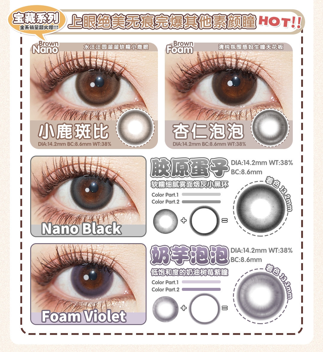 【小红书推荐款】arouge奶芋泡泡,半年抛/直径14.2/着色13.3, 168/一副,268/两副(商品详情任选,最高度数有1000,3月28号结束)