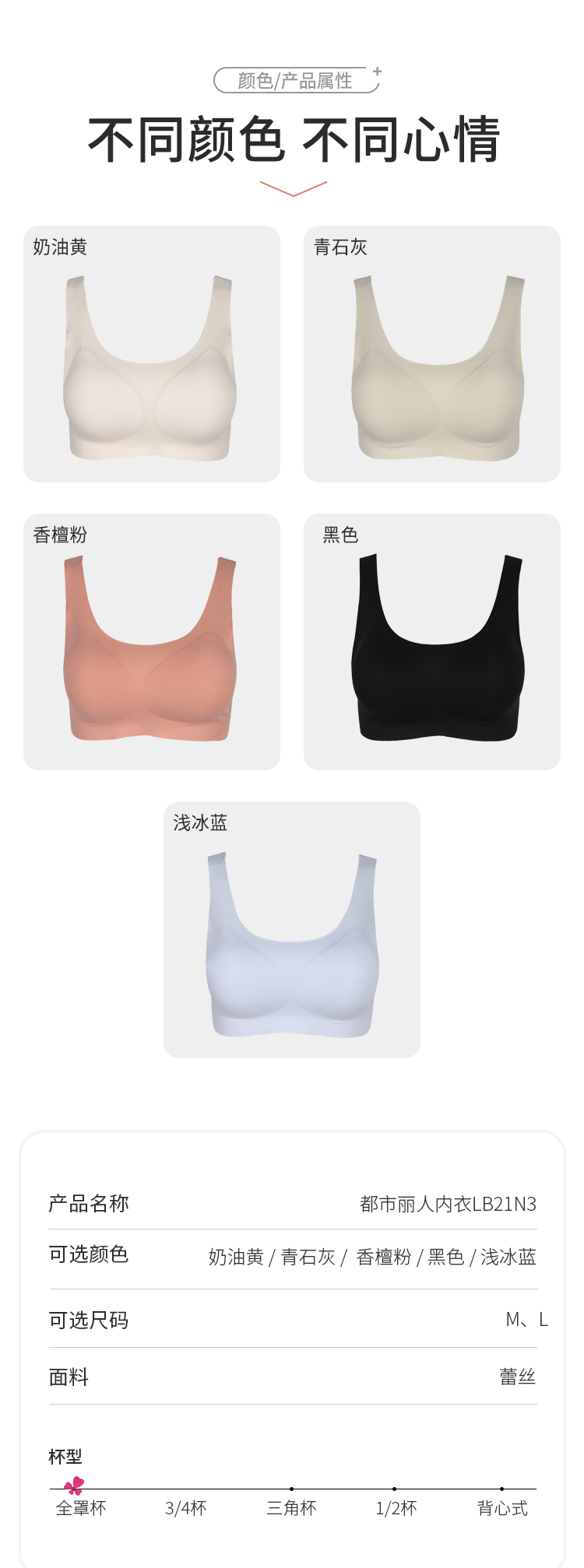都市丽人软尺码无痕内衣隐形内衣百搭打底BC杯中厚泳布文胸无钢圈三排扣LB45X9