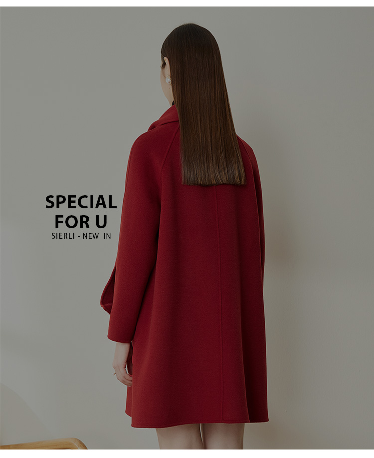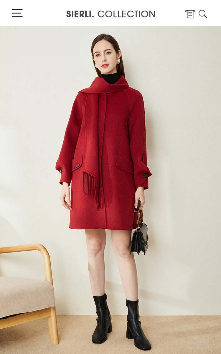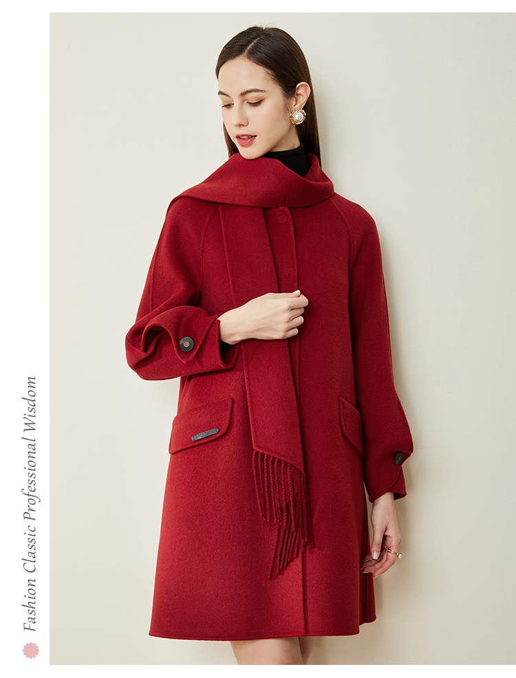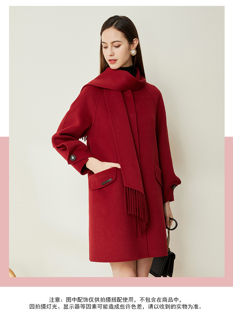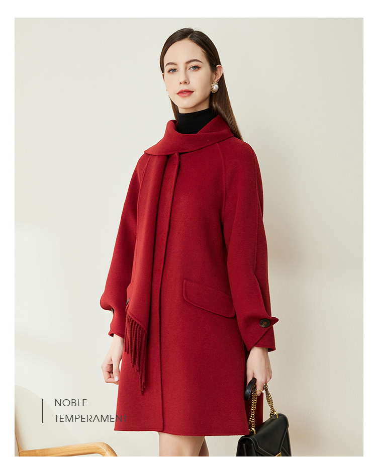 ND93X斯尔丽瑟俪2021秋冬新款优雅流苏围巾领A摆休闲舒适中长女式大衣