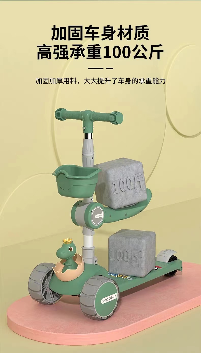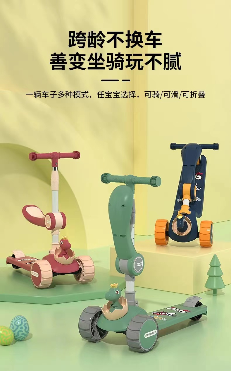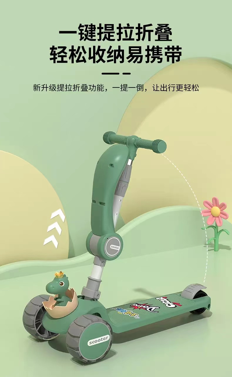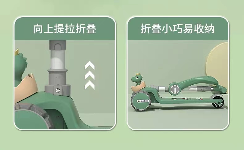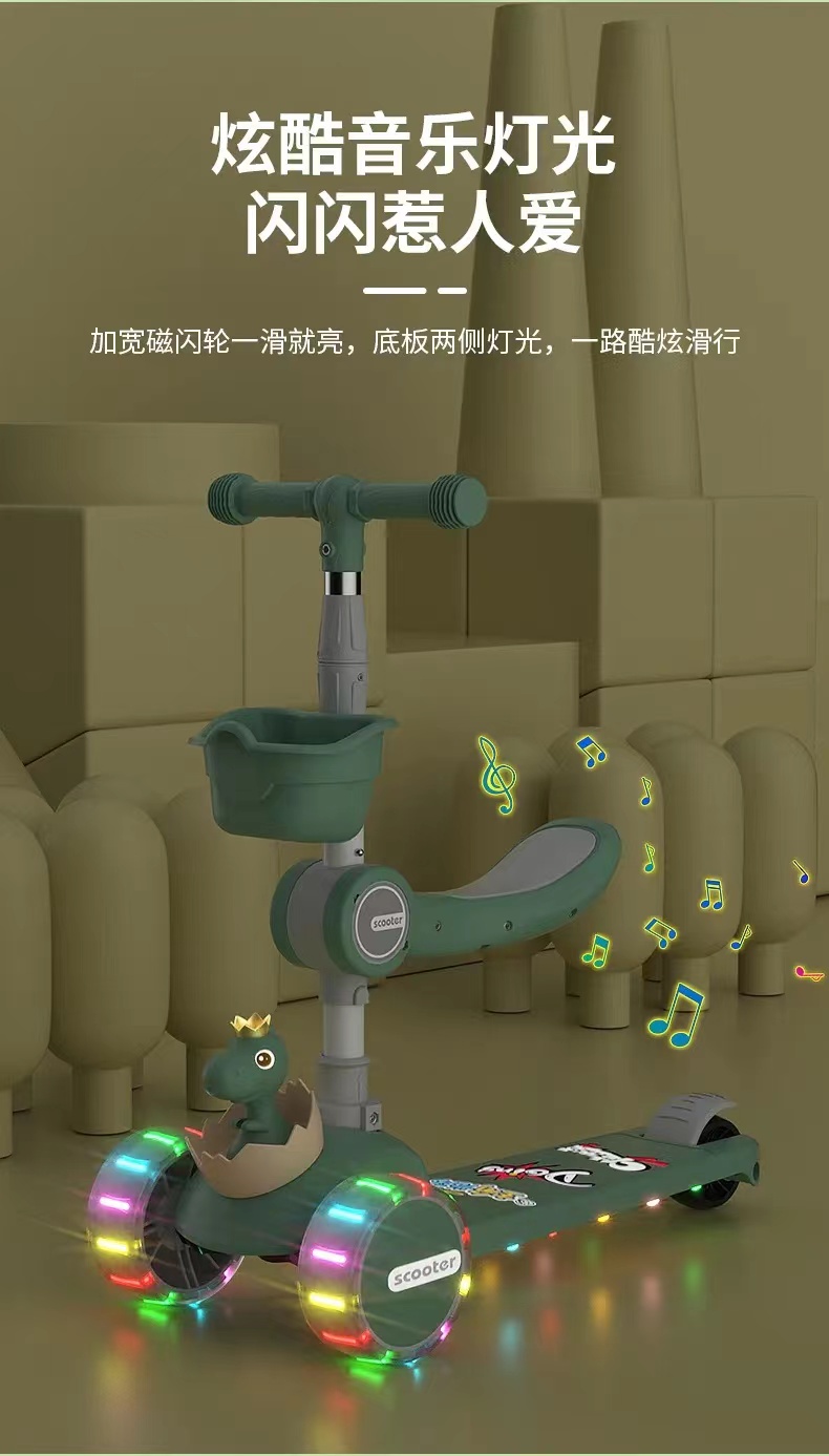 网红爆款小小恐龙造型悍马轮儿童可折叠滑板车三合一滑行车玩具车溜溜车带音乐灯光