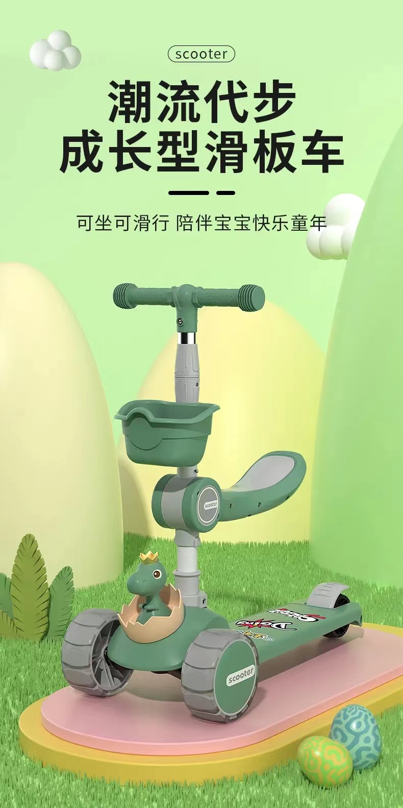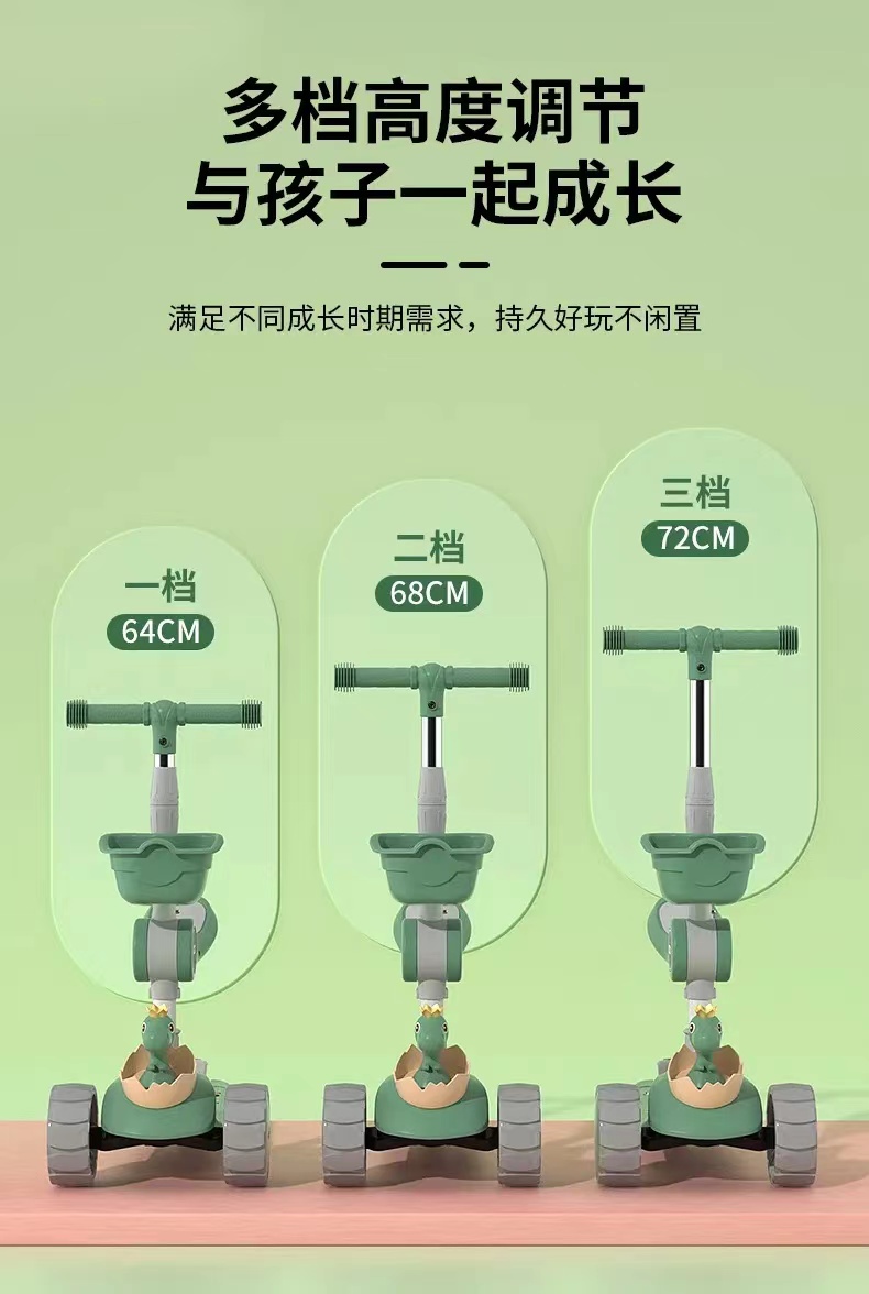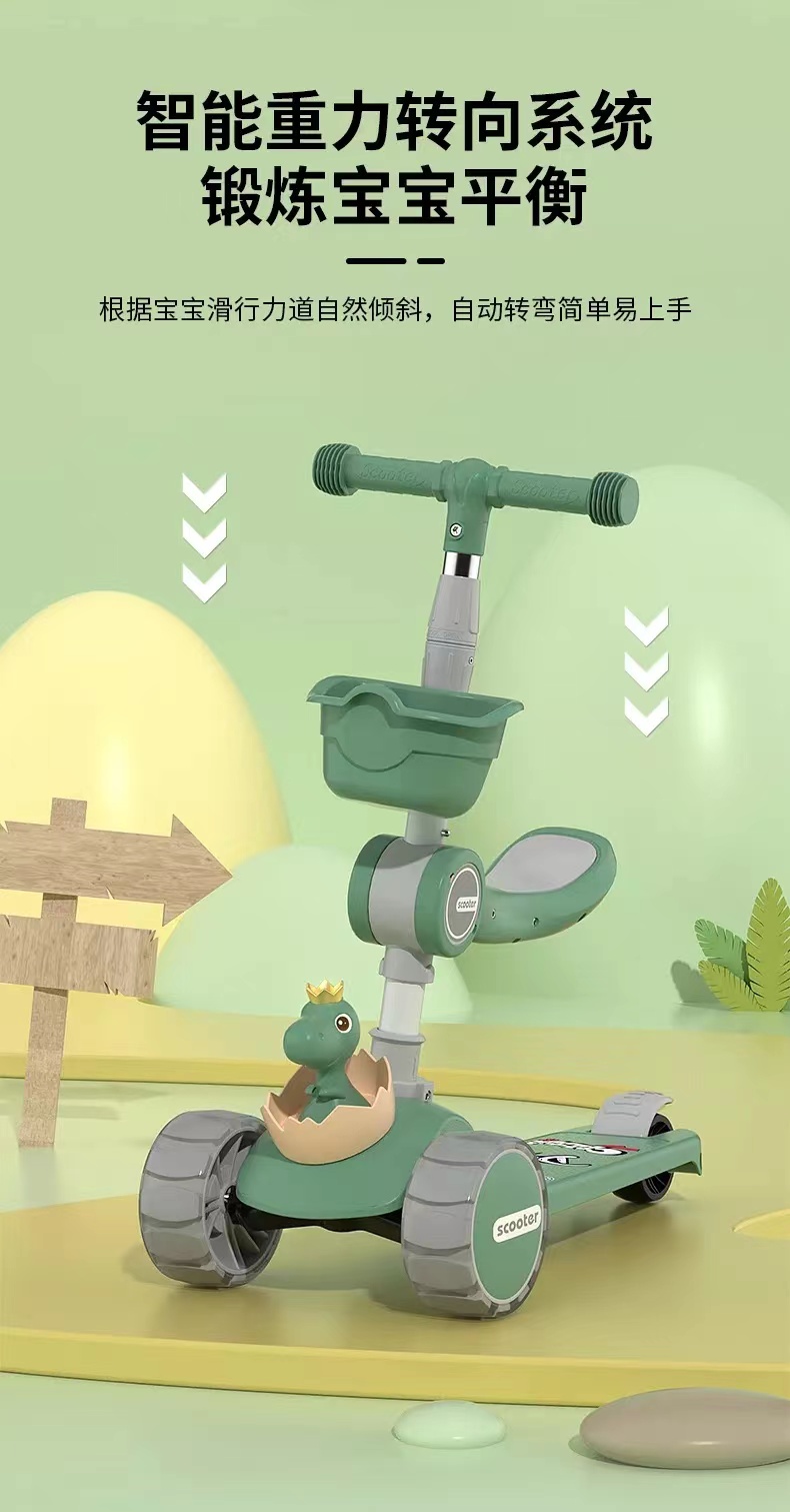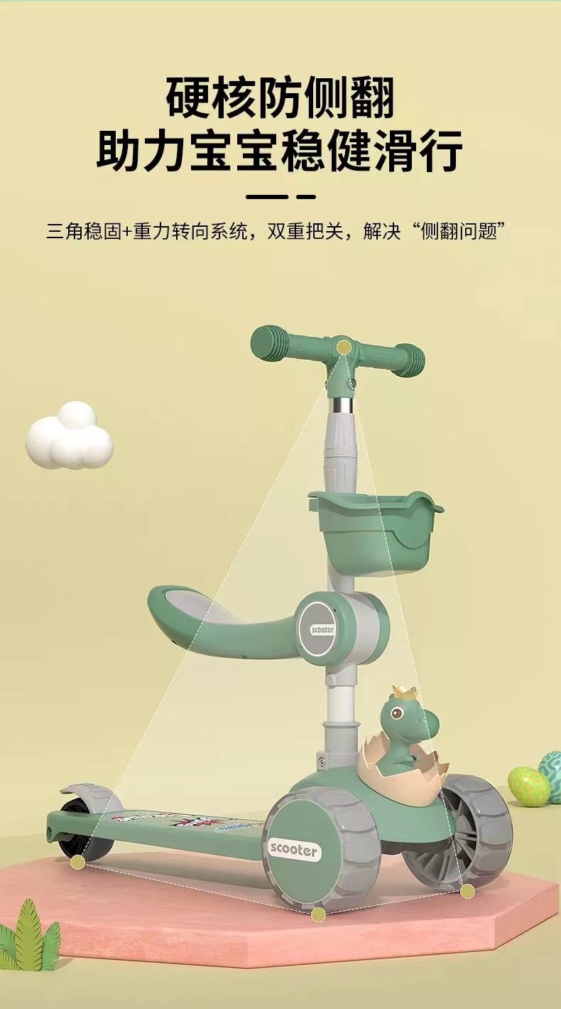 网红爆款小小恐龙造型悍马轮儿童可折叠滑板车三合一滑行车玩具车溜溜车带音乐灯光