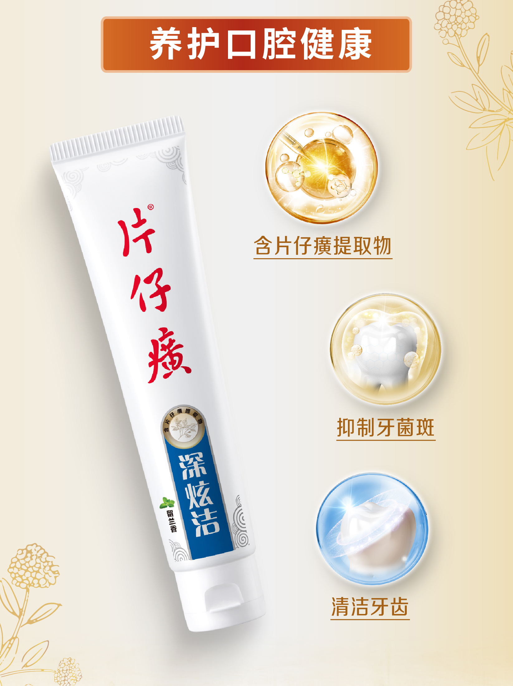 专研配方,含片仔癀提取物,抑制牙菌斑形成,维护口腔健康;