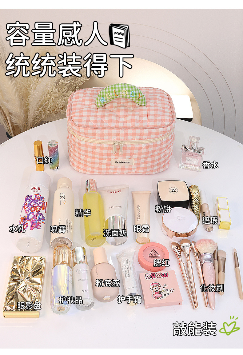 【ins可爱化妆包❗️清新奶油高颜值】大容量便携式收纳包旅行洗漱包;手提设计 携带方便;敲大容量软绵绵;汽水配色 清凉舒爽一整个爱住